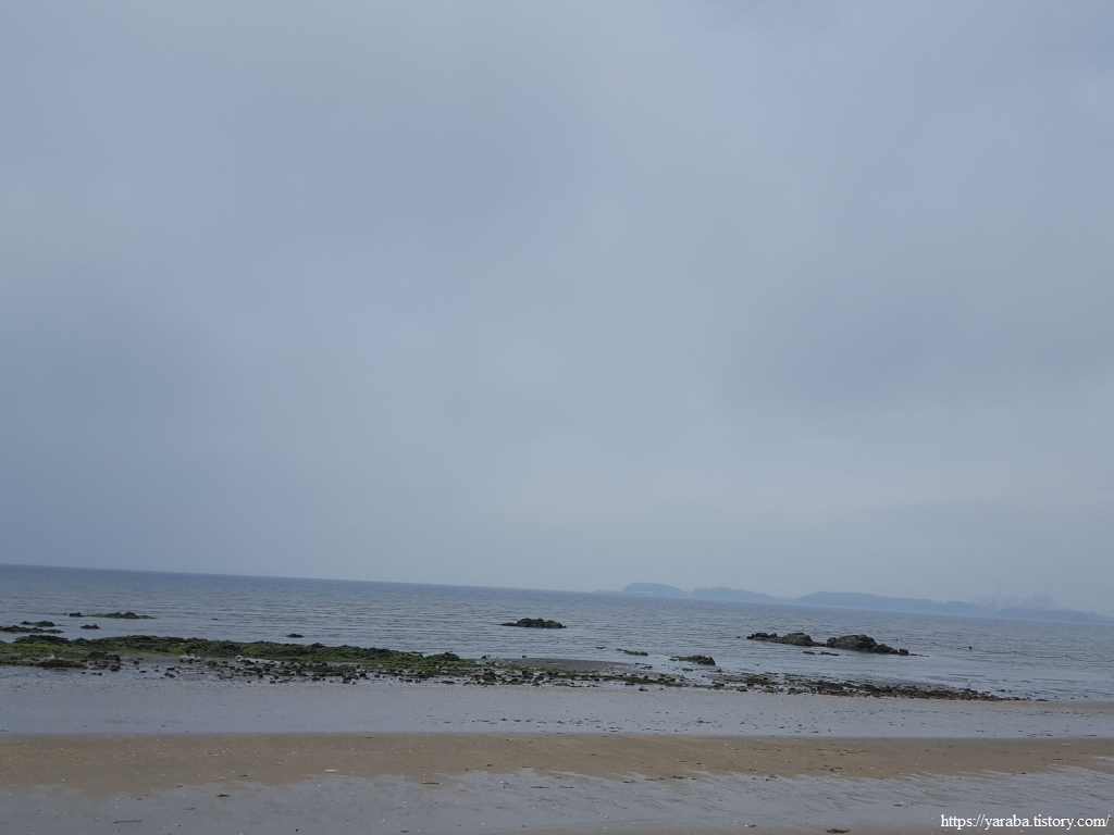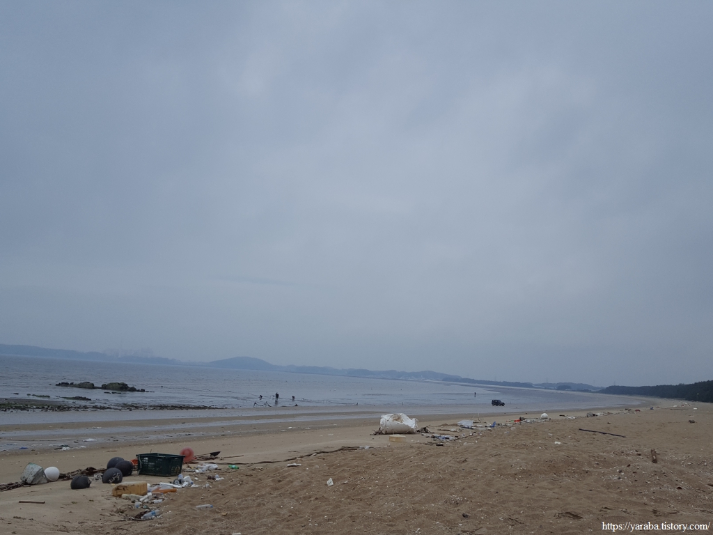 띠섬목 해수욕장이다. 유명 해수욕장처럼 매일 쓰레기를 치우는 것이 아니라서 밀려온 해양쓰레기들이 방치되어 있기는 하지만 그래도 사람들의 손길이 타지 않은 해변 같아 좋다.
