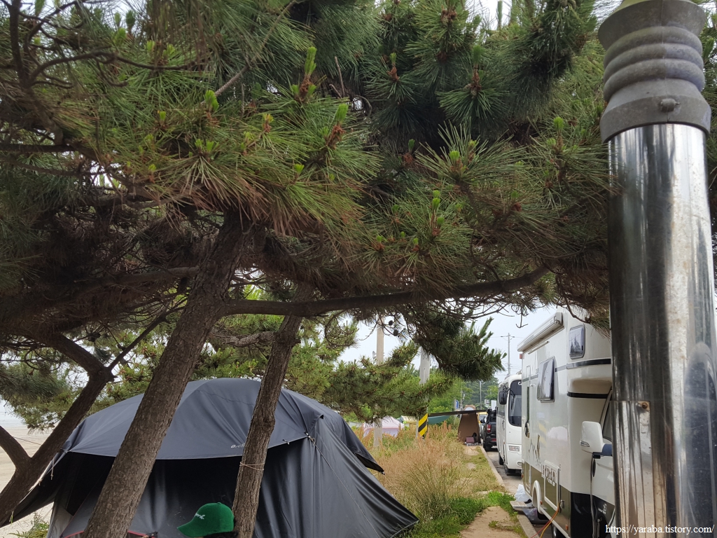 도로와 모래해변 사이로 수많은 캠핑족들이 자리하고 있었다. 이곳도 조개 캐기 좋은 명소로 알려진 모양이다. 도로 주위로는 캠핑하는 사람들의 차량들로 빈 공간이 없다.