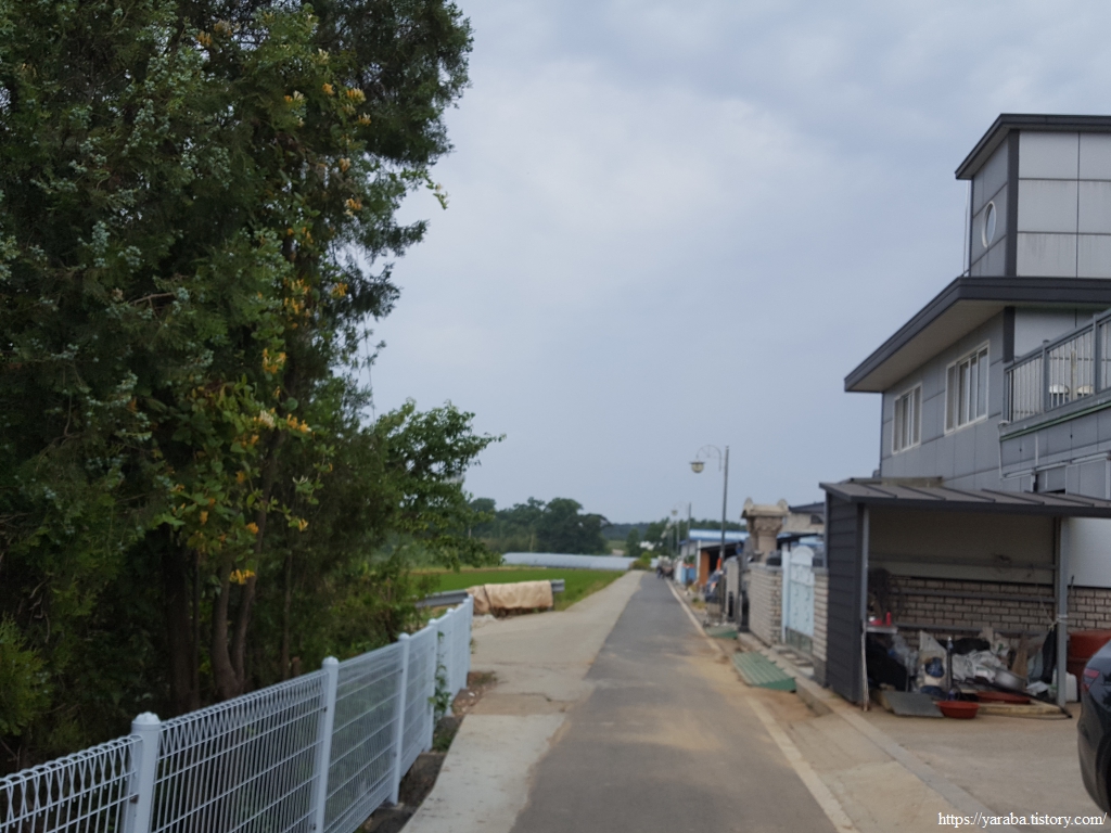 소황마을 정자에 앉아서 잠시 휴식 시간을 가지고 길을 이어간다. 마을이 새로 생긴 마을인양 바둑판처럼 정리가 되어 있었는데 1980년대 이곳에 공군사격장이 생기면서 집단 이주한 것이 아닌가 싶다.