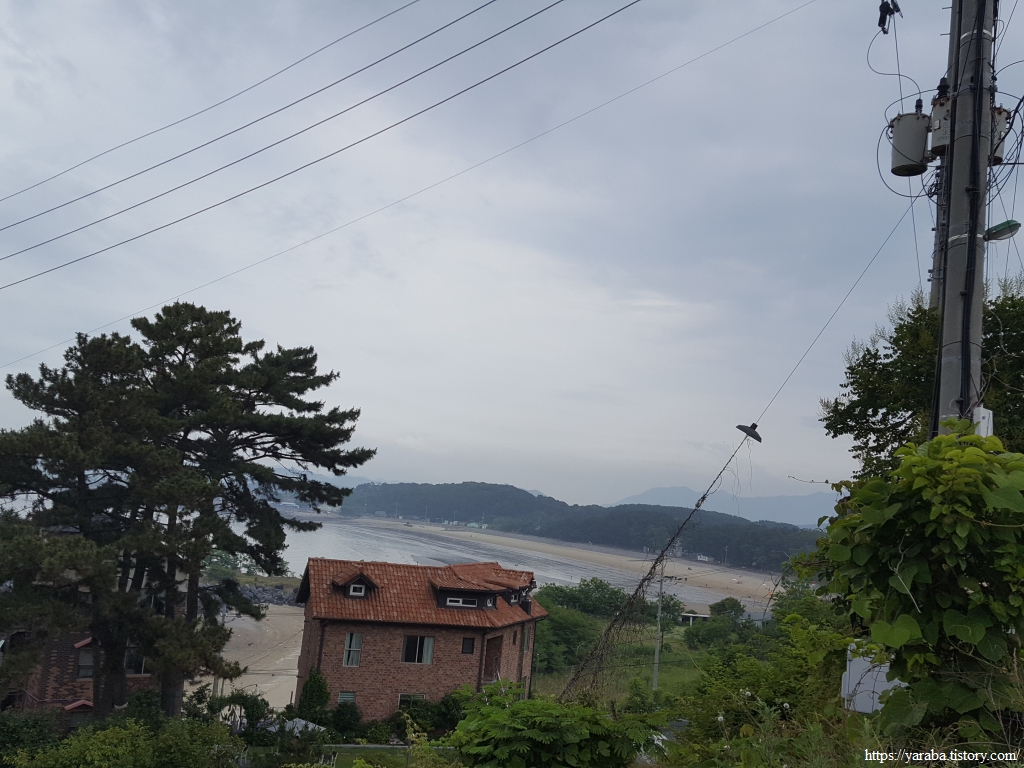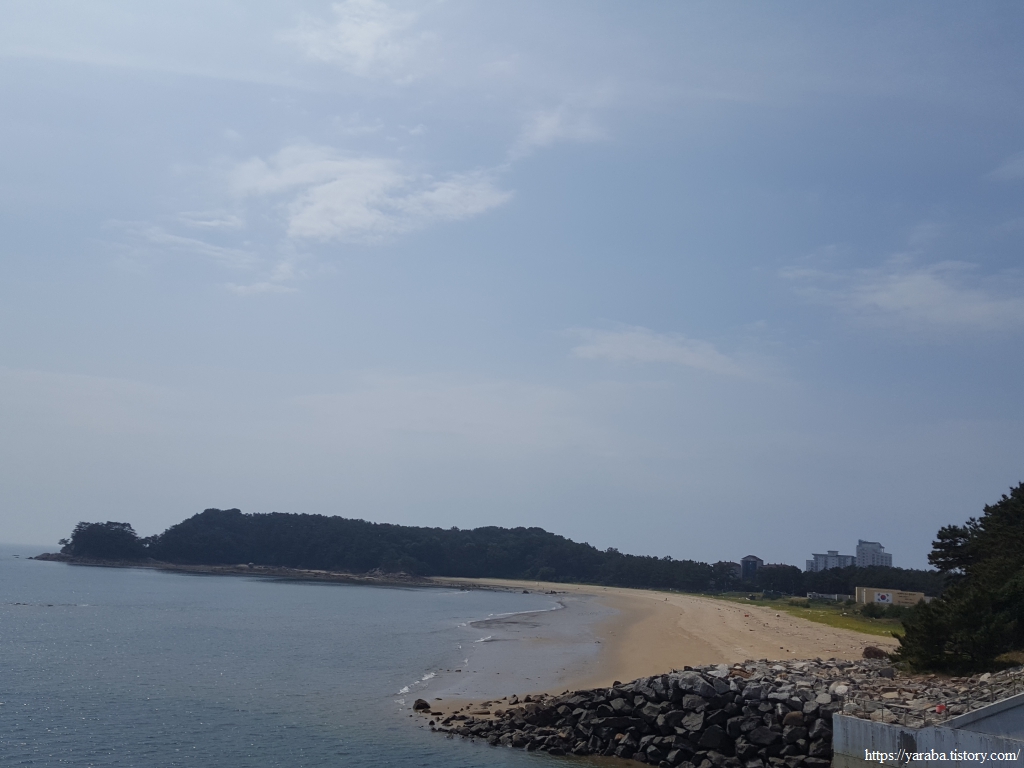작은 언덕길을 지나 내리막 길에 들어서니 언덕 아래로 용두 해수욕장이 시야에 들어온다.
