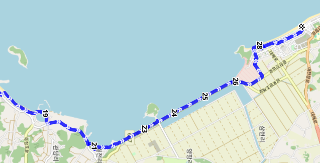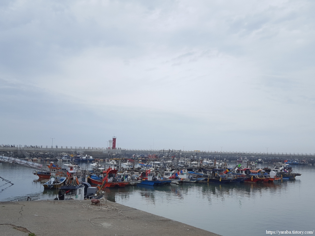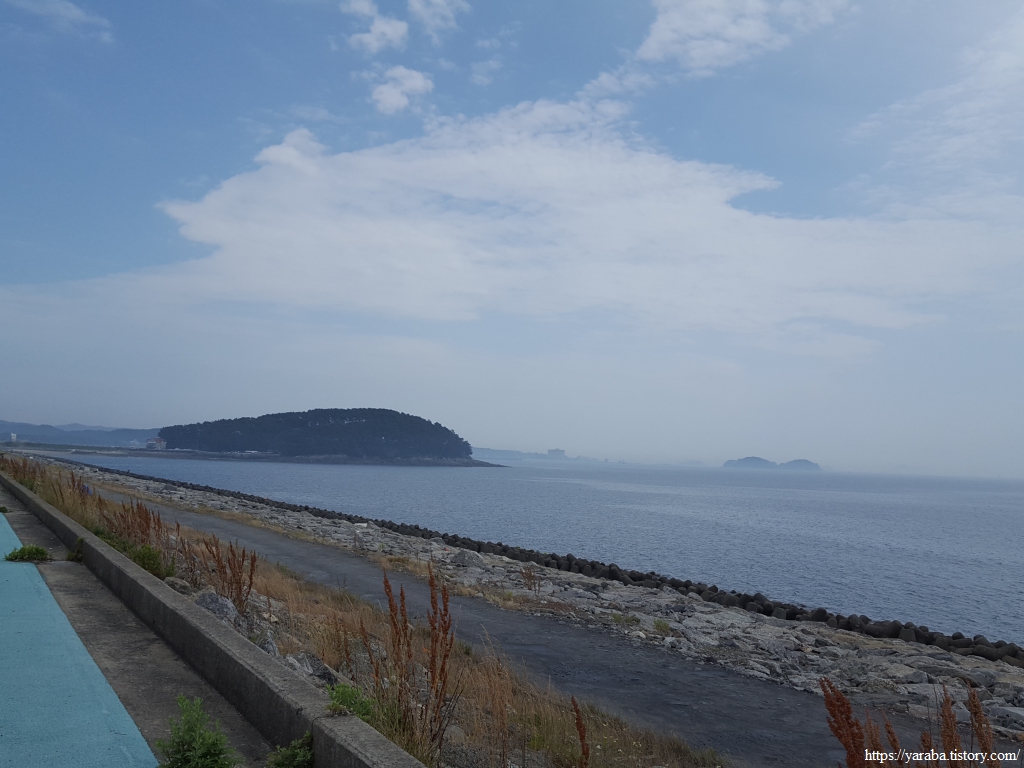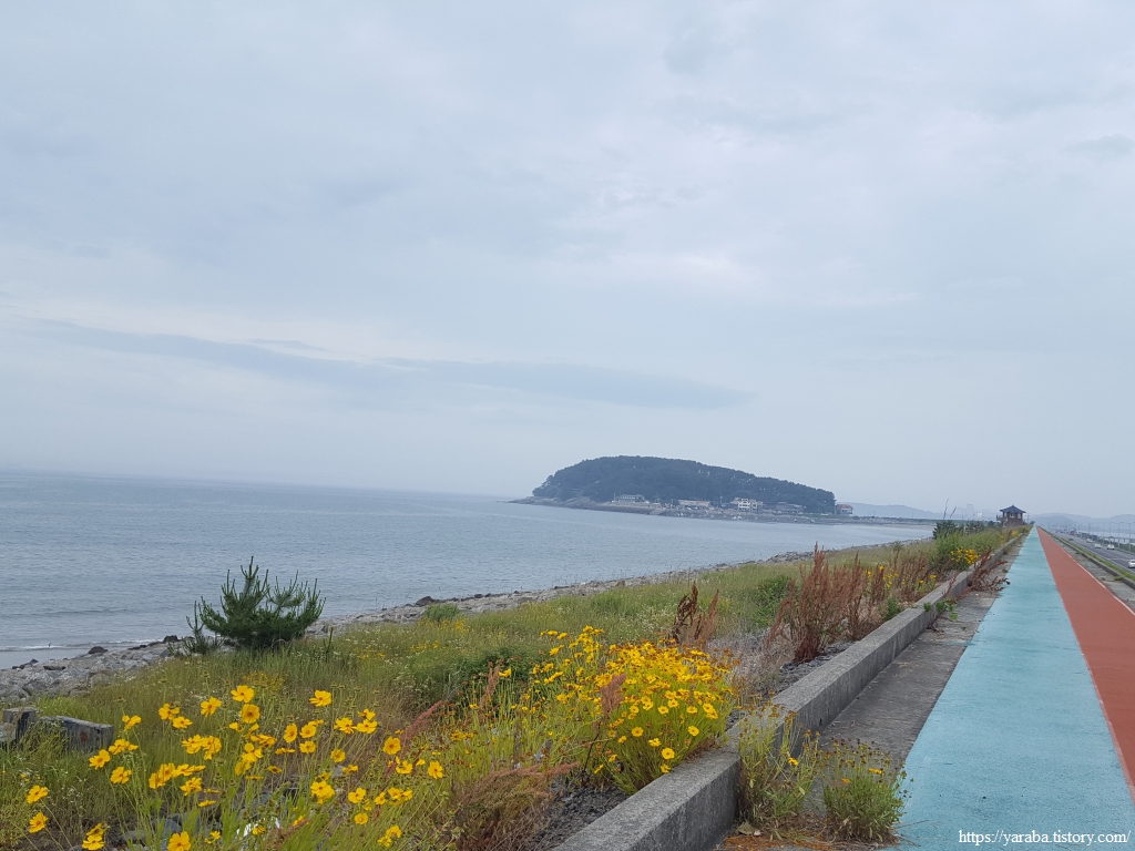 항구를 넘어온 길은 수산 자원 연구소를 끼고 좌측으로 돌아서 열린바다로 도로를 따라 용두 해수욕장으로 향한다.
