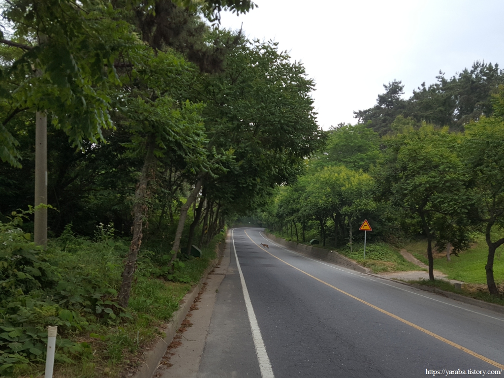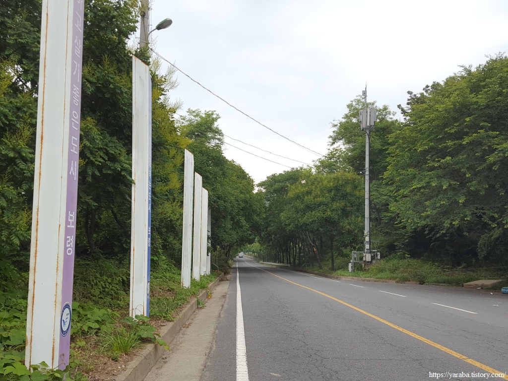 길은 용두 해수욕장 끝에서 작은 언덕을 올라서 보령요트경기장 뒤편의 작은 야산을 가로질러 간다.