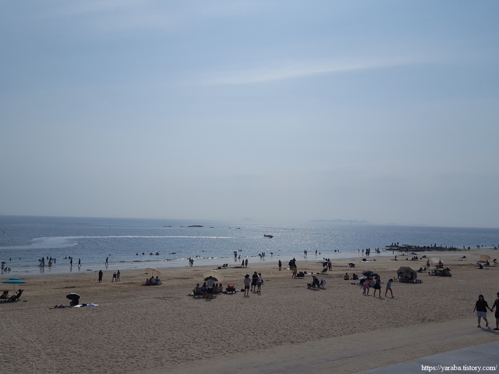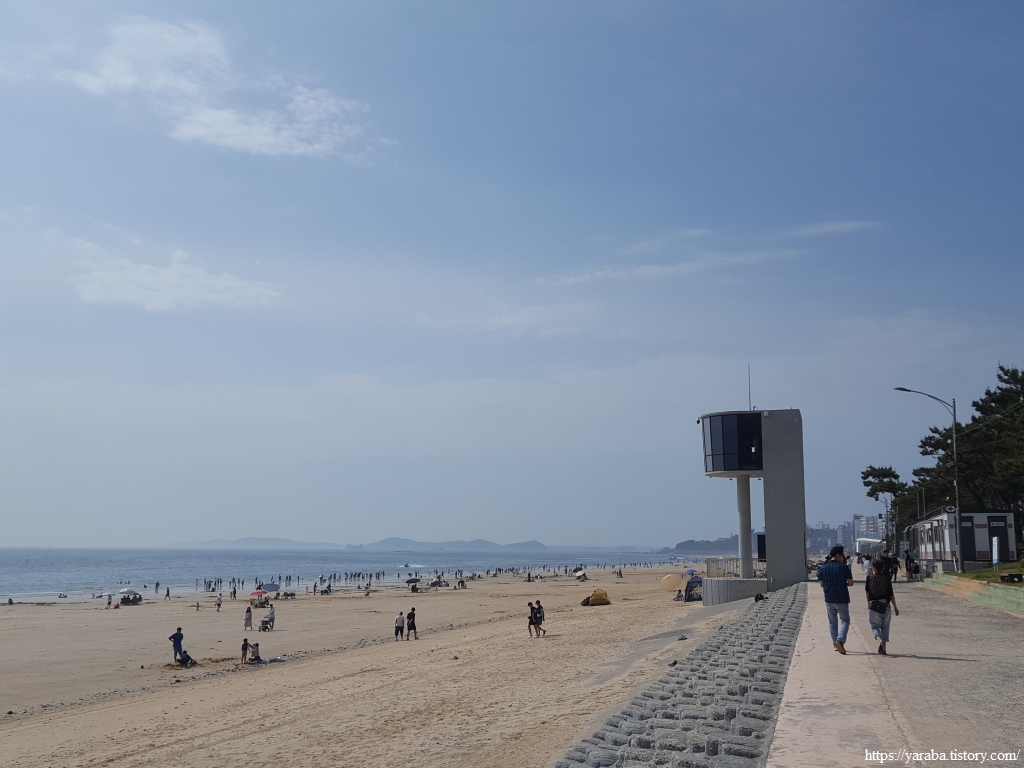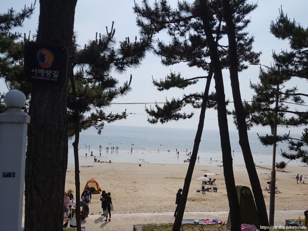 해수욕장 벤치에 앉아서 넉넉한 휴식 시간을 가지고 길을 이어간다. 아장아장 걷는 아이들을 데리고 이곳을 찾은 젊은 엄마 아빠들이 많았다.