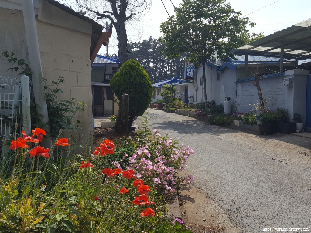 해수욕장 뒤편의 민박집들을 가로질러서 바다로 나간다. 민박집을 보니 세월이 멈춘듯한 느낌이다.
