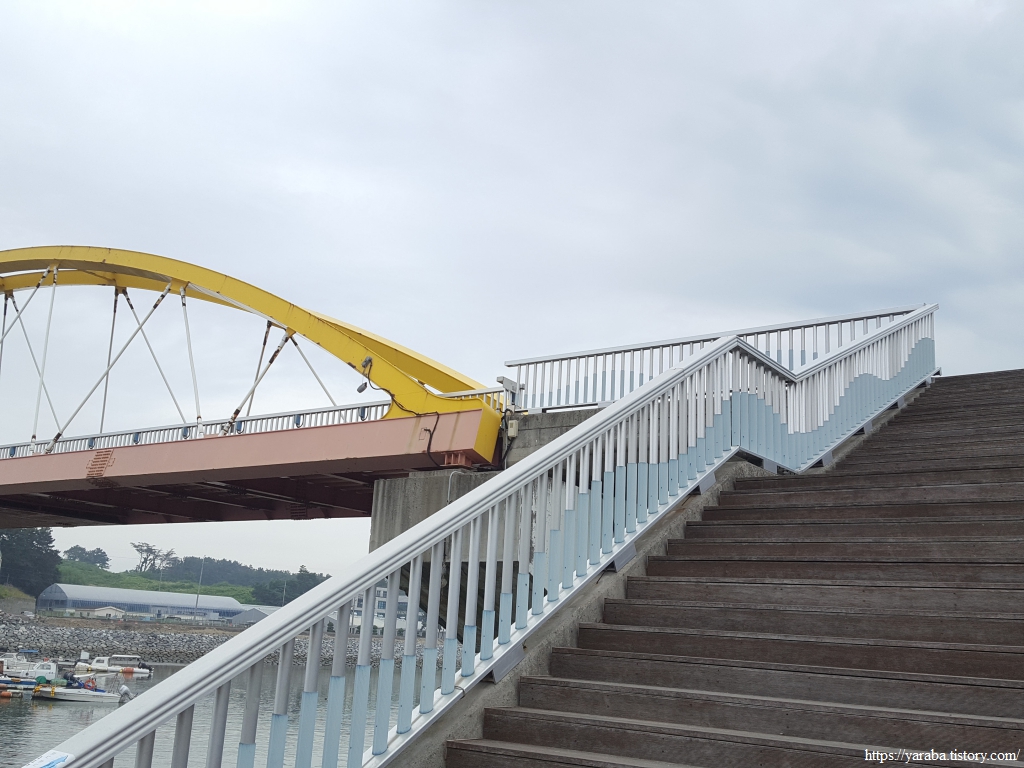 항구 내부를 가로지르는 인도교를 통해서 항구 건너편으로 넘어간다.