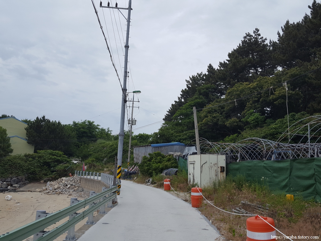 군 복지 시설을 돌아가는 길, 갓배교차로에서 해수욕장 방향으로 이동한다.