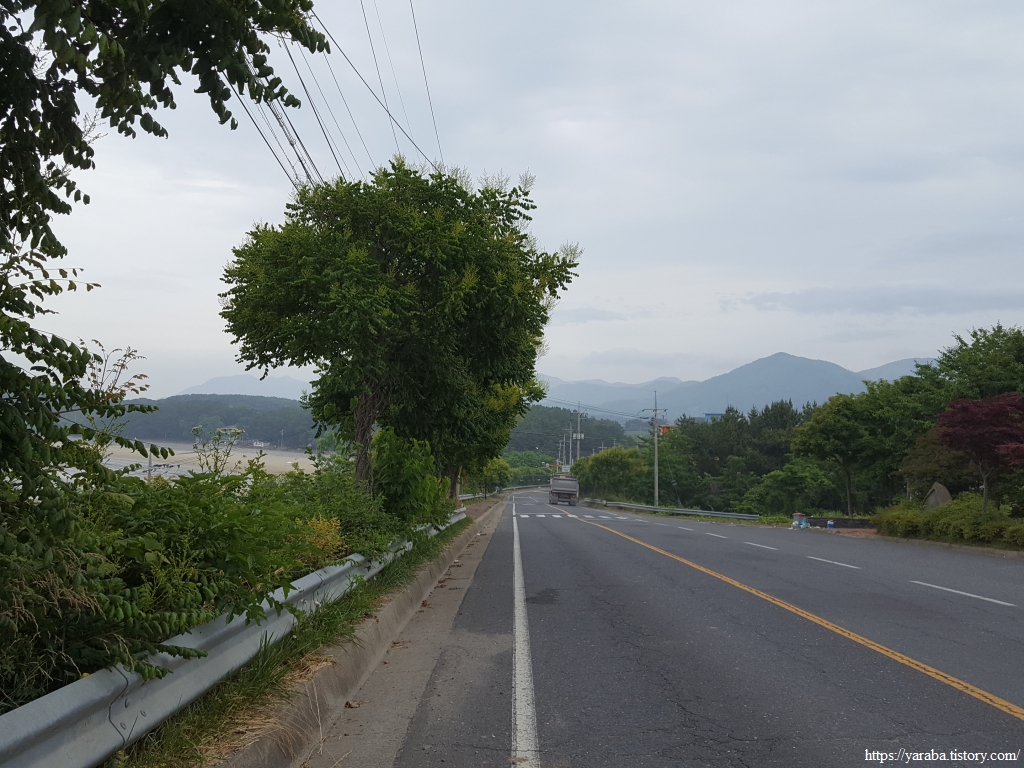 열린바다로 도로의 갓길을 걸으며 길은 보령시 웅천읍에서 남포면으로 넘어간다.