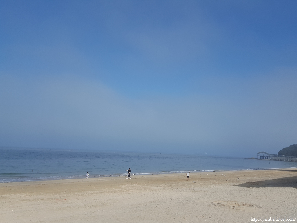 쾌청한 날씨 덕분에 더욱 파랗고 맑은 하늘과 바다는 부지런한 일부 사람들의 몫이다. 북적이는 오후의 해변을 보다가, 아침의 한적한 대천 해변을 만나니 참 좋다.