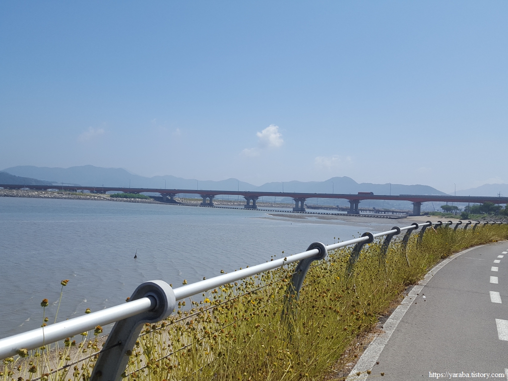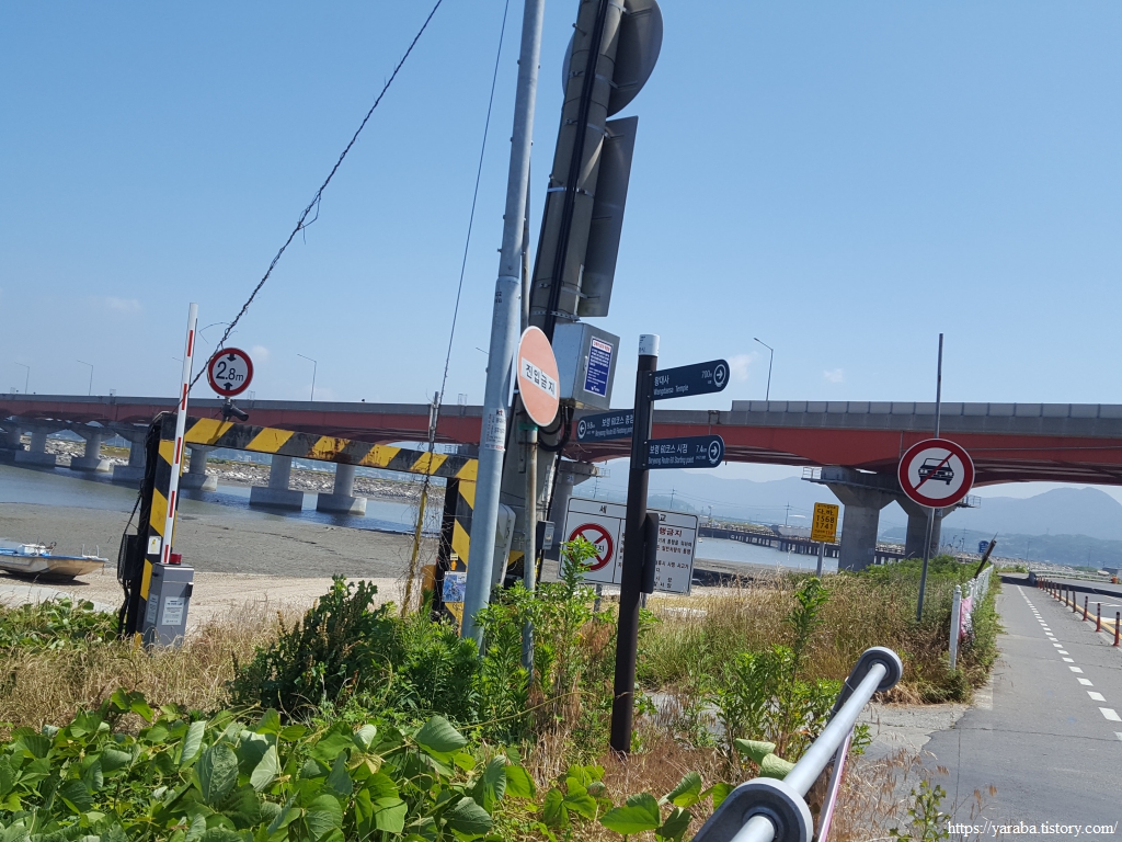 대천방조제 위로도 산책길이 있지만 길은 대천방조제로 도로 옆의 자전거길을 따라서 주교면으로 들어간다.