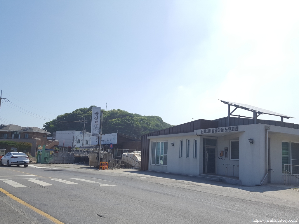 강당 마을을 지나니 한창 공사 중인 대천항 현장도 지나고 푸른 바다를 만난다.