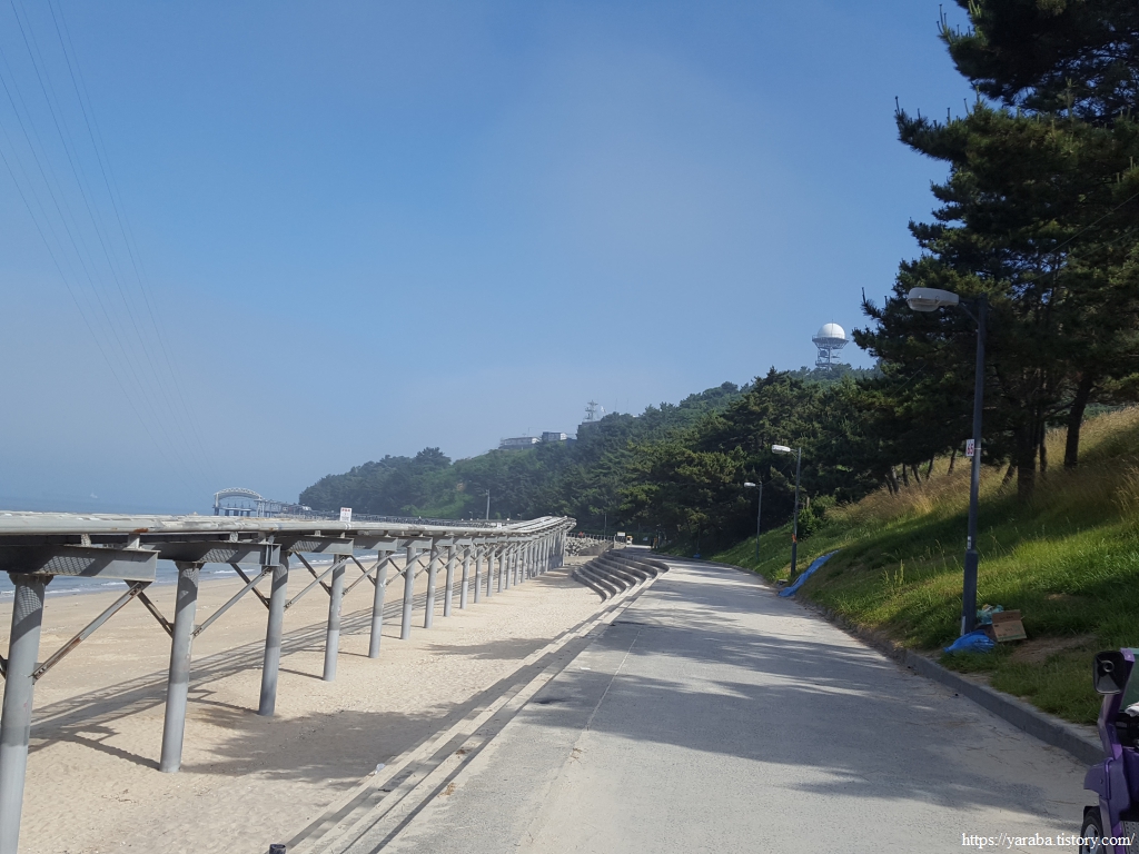 대천해수욕장 스카이바이크가 가는 길 옆으로 조성된 산책로를 따라서 북쪽으로 이동한다. 물이 맑고 군데군데 바위가 있으니 이곳이 동해 인가? 하는 착각이 들 정도이다.
