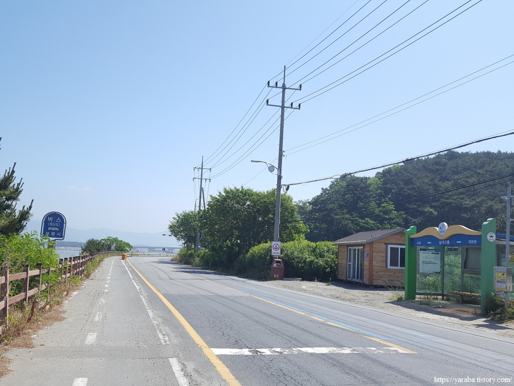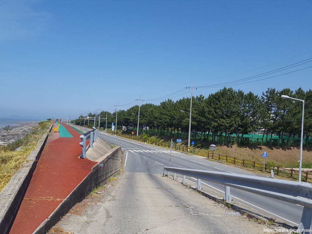 36번 국도는 대천항에서 보령 해저 터널 앞쪽으로 내려가고, 우리는 해안로 도로를 따라서 동쪽으로 이동한다. 도로변이기는 하지만 자전거 도로가 마련되어 있어서 걸을만하다.