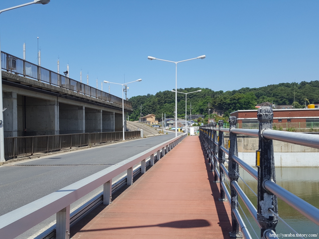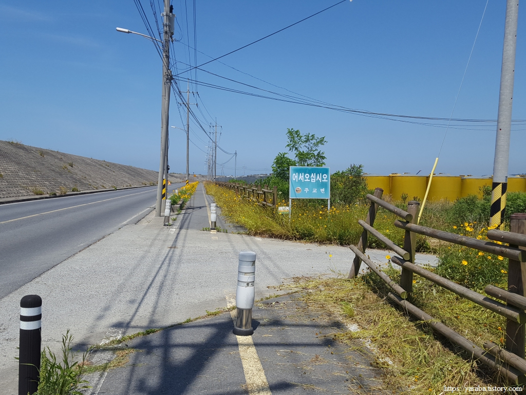 대천방조제를 따라 걸으며 길은 보령시 대천동에서 주교면으로 넘어간다.