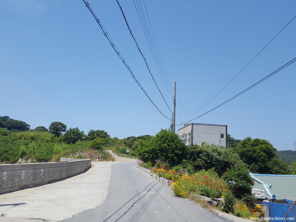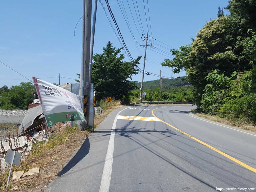 안산마을로 들어온 길은 해안을 벗어나 내륙으로 들어간다. 발전소로 연결되는 도로를 향하는 길이다.