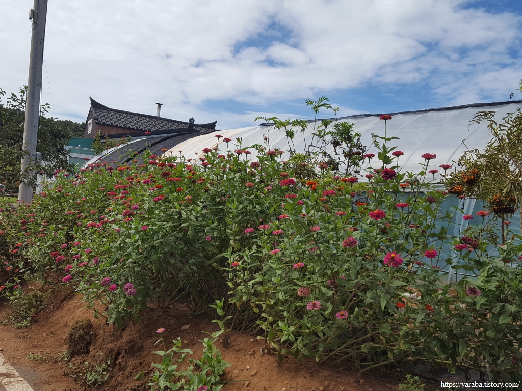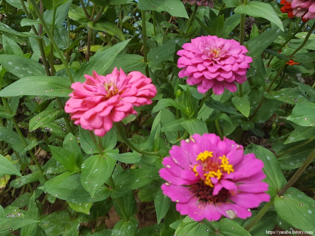 배롱나무를 백일홍 나무라고도 하지만 원래 국화과의 한해살이풀인 백일홍을 한 농가 정원에서 만난다. 멕시코가 원산이라고 한다.