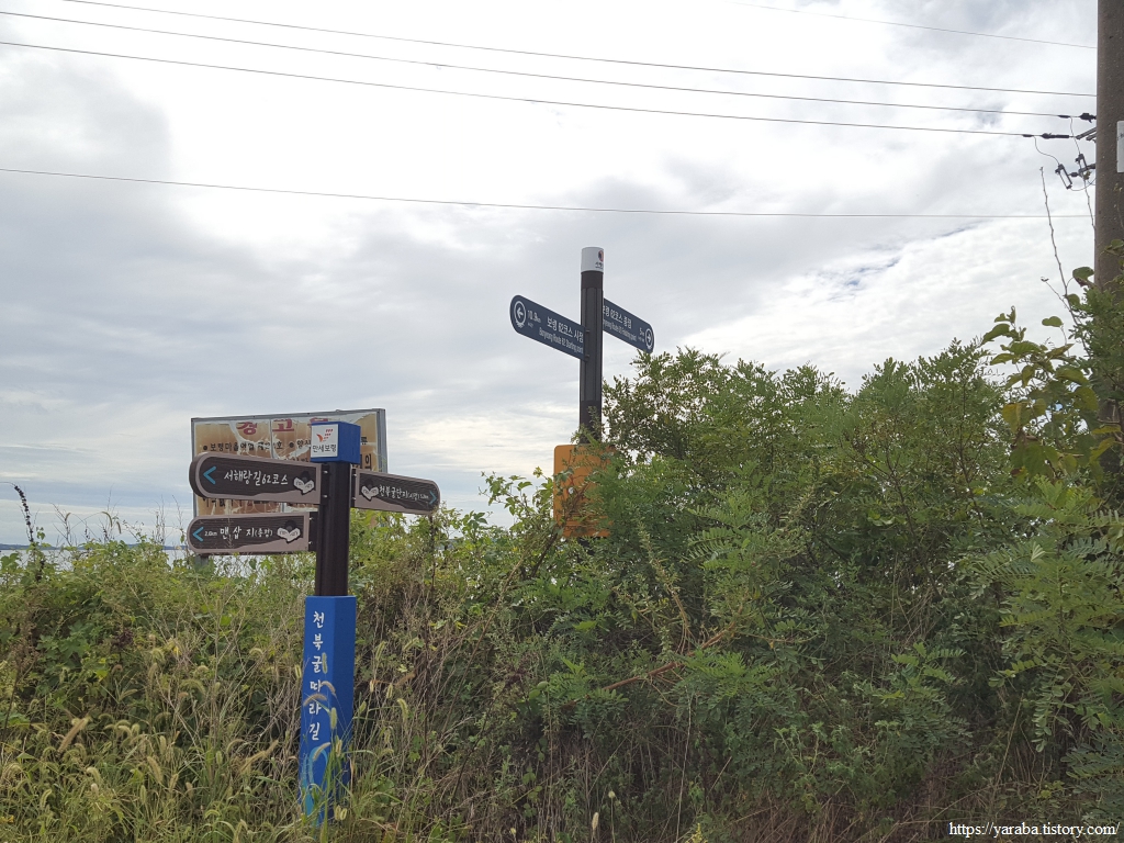 우회로는 사호 2리 노인회관을 끼고 좌회전하여 돌아가면 이후로는 숲길을 거쳐 장은리 천북 굴단지에서 여정을 마무리할 수 있다. 명절을 맞이해서 가족과 함께한 서해랑길 걷기는 예상치 못한 폭염과 만조로 어려움이 있었지만 나름 독특한 경험을 한 추억으로 남을 듯하다.