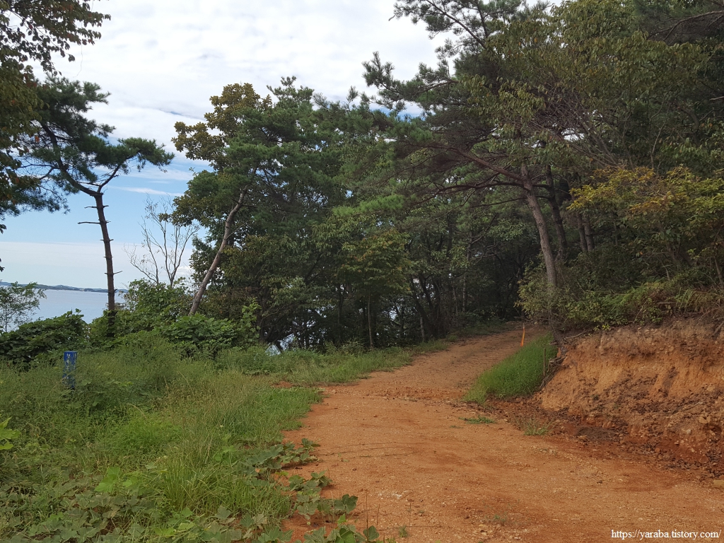 지금은 만조 때라 해안으로는 갈 수 없으니 천북굴따라길의 흔적을 따라서 계속 이동한다.