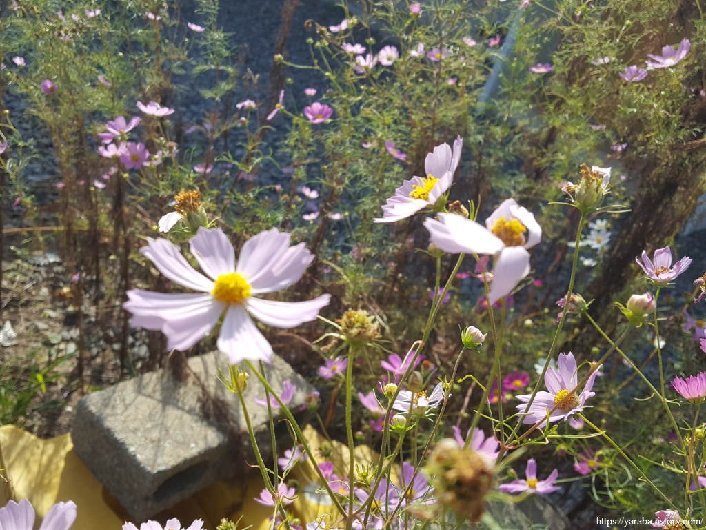 도로변을 걷지만 한들거리는 코스모스가 나그네를 반겨준다. 코스모스 풍경은 가을 풍경에서 결코 빠질 수 없다.