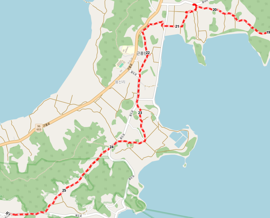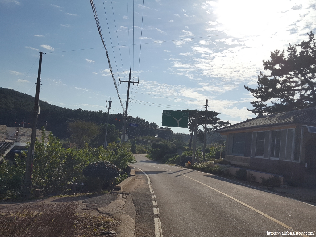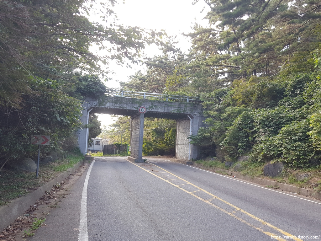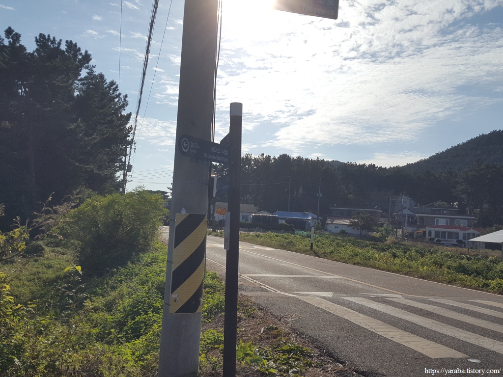 계곡길을 빠져나온 길은 소암해변에서 채석포를 거쳐온 용도로 도로와 합류하여 길을 이어간다.