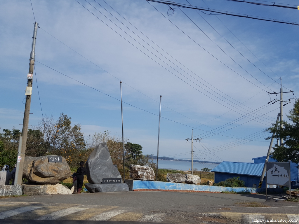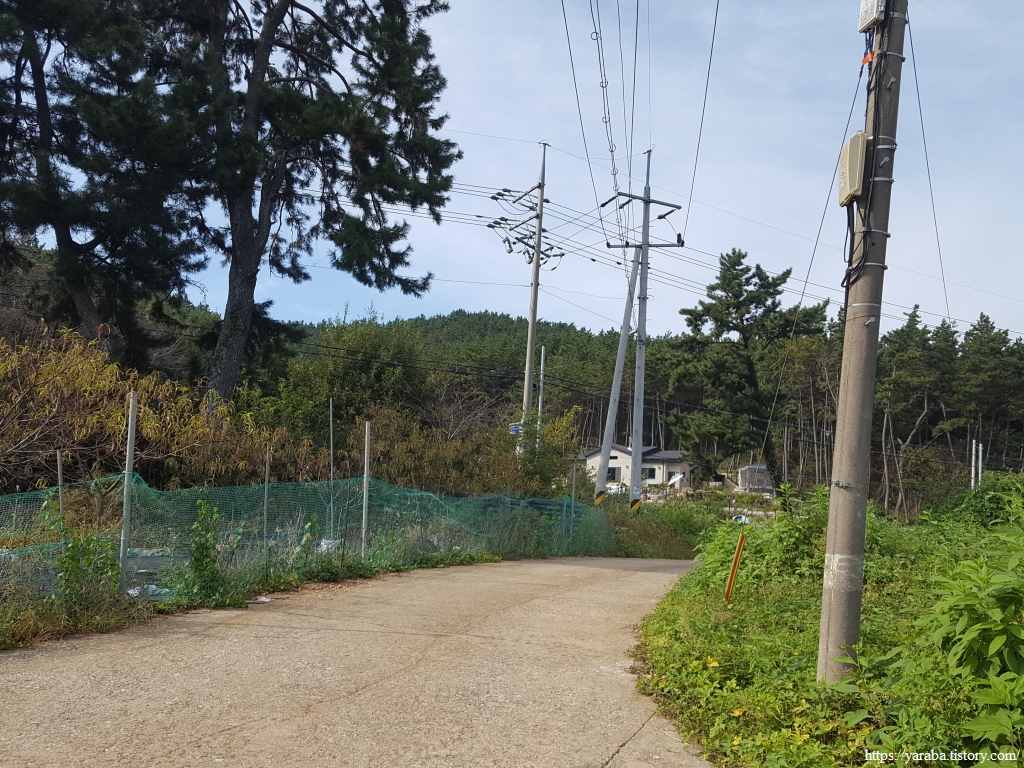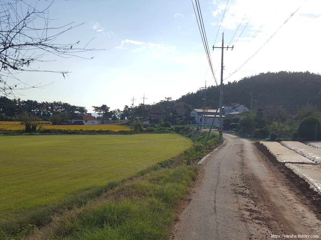용도로 도로를 따라 걷던 길은 용신 2리, 원안해수욕장입구에서 잠시 마을길로 길을 돌아서 간다.