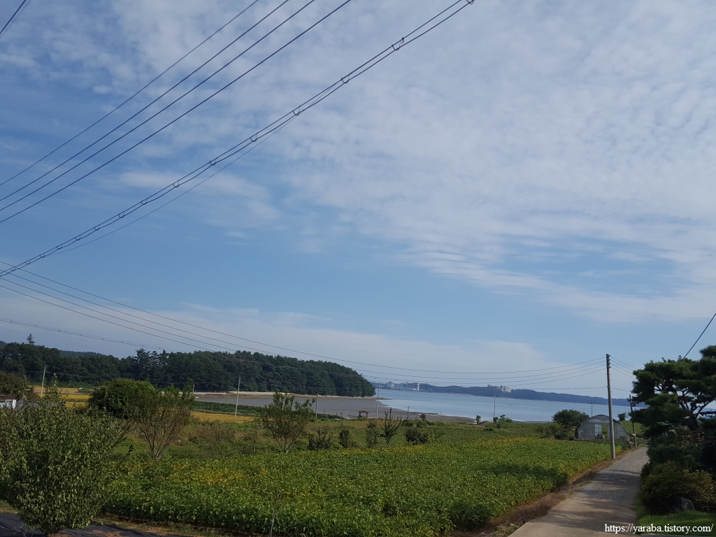 작은 언덕길을 지나 남쪽으로 내려가는 길에는 근흥만 바다가 시원하게 시야에 들어온다.