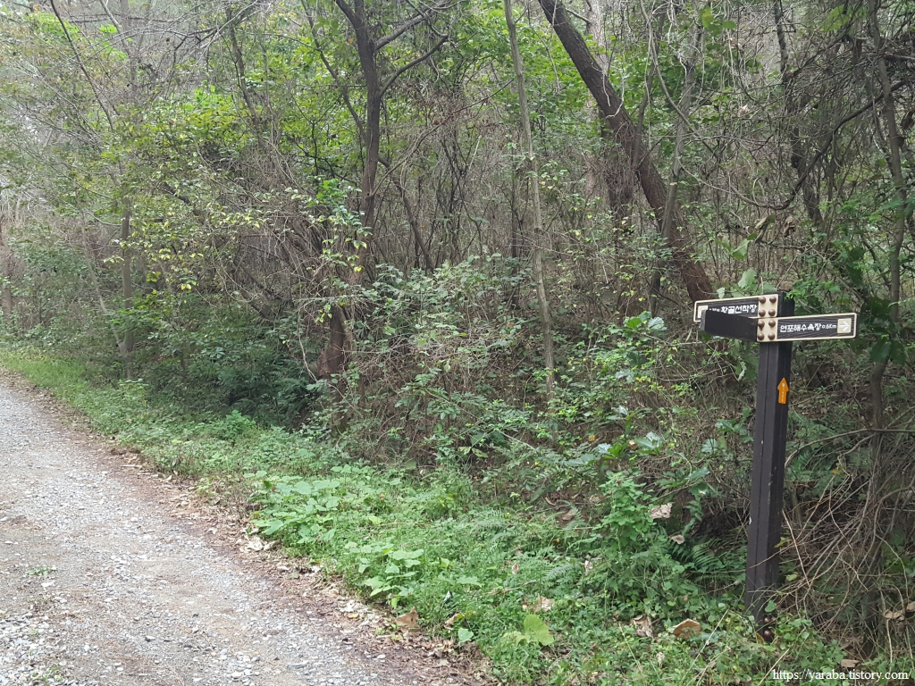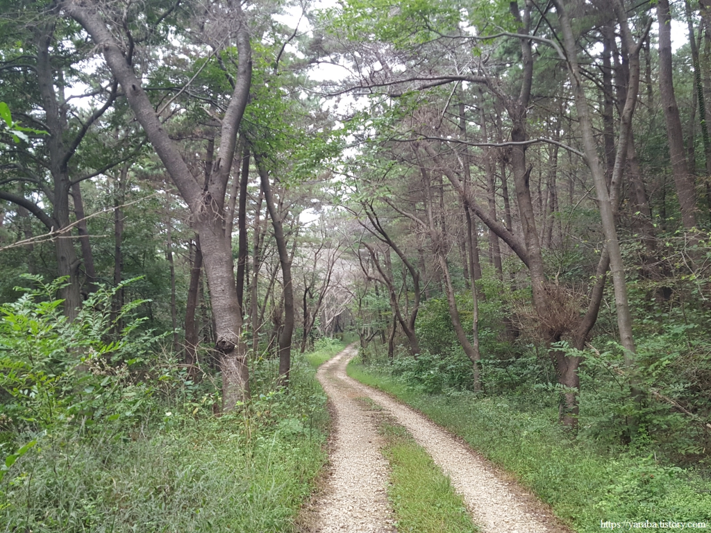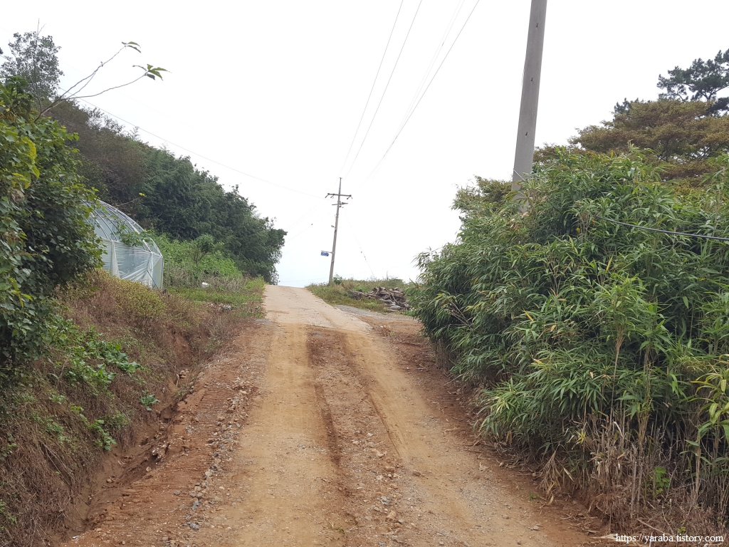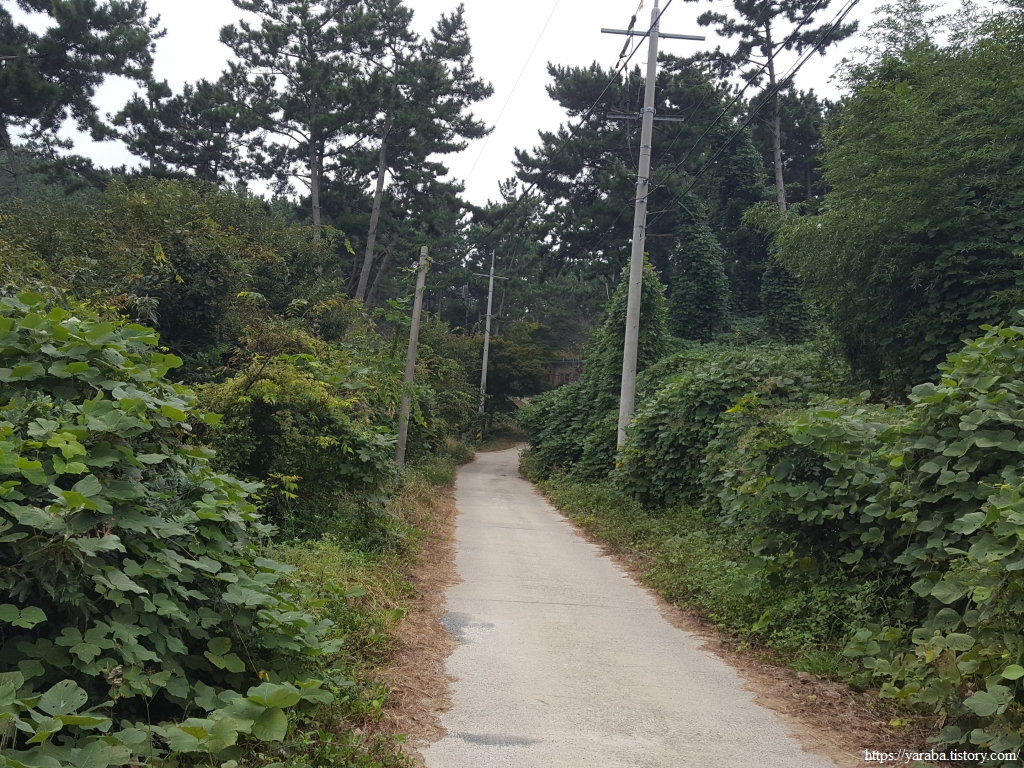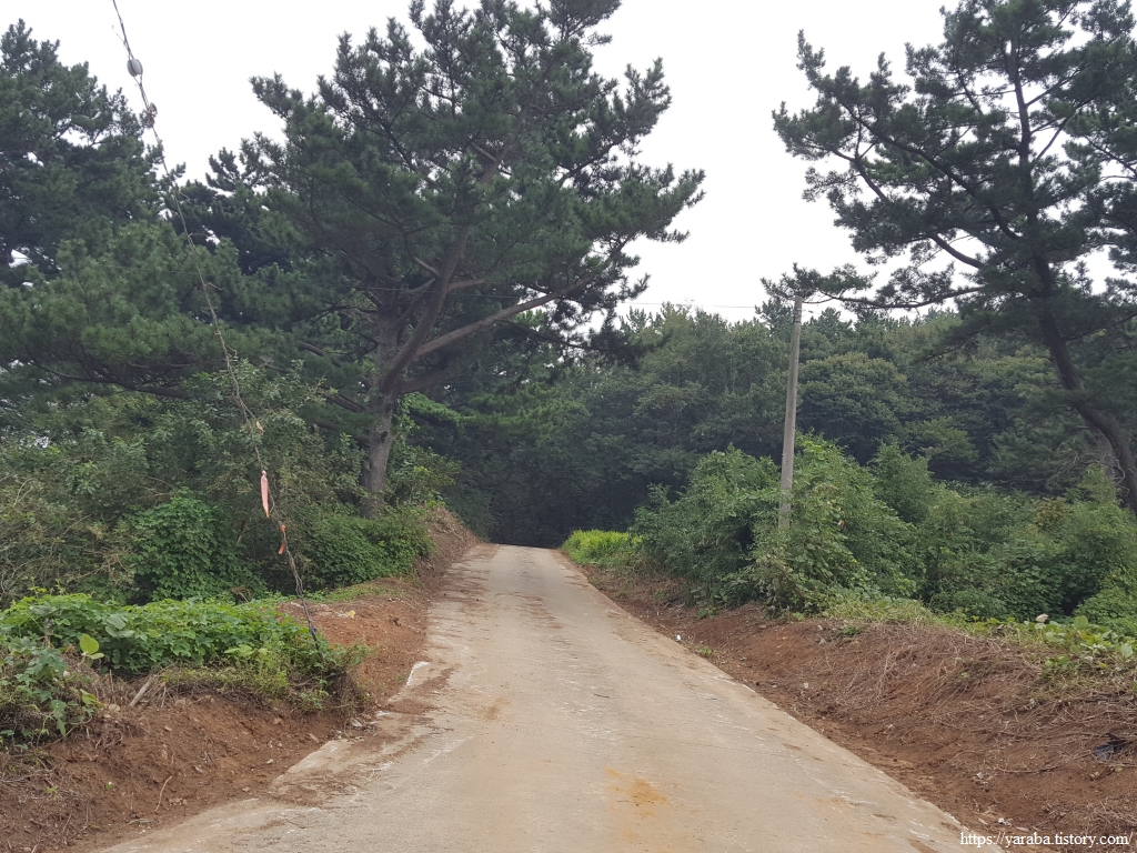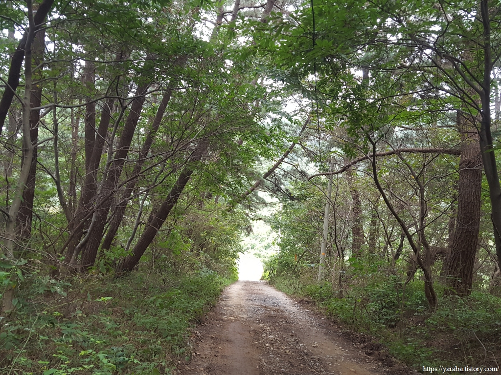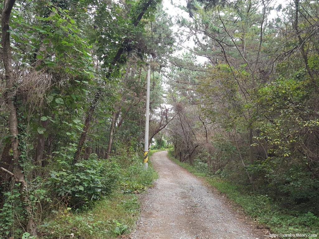 연포항 선착장이 보이는 갈림길에서 임도로 진입한다. 고도 50여 미터의 임도로 높지 않은 산이다.