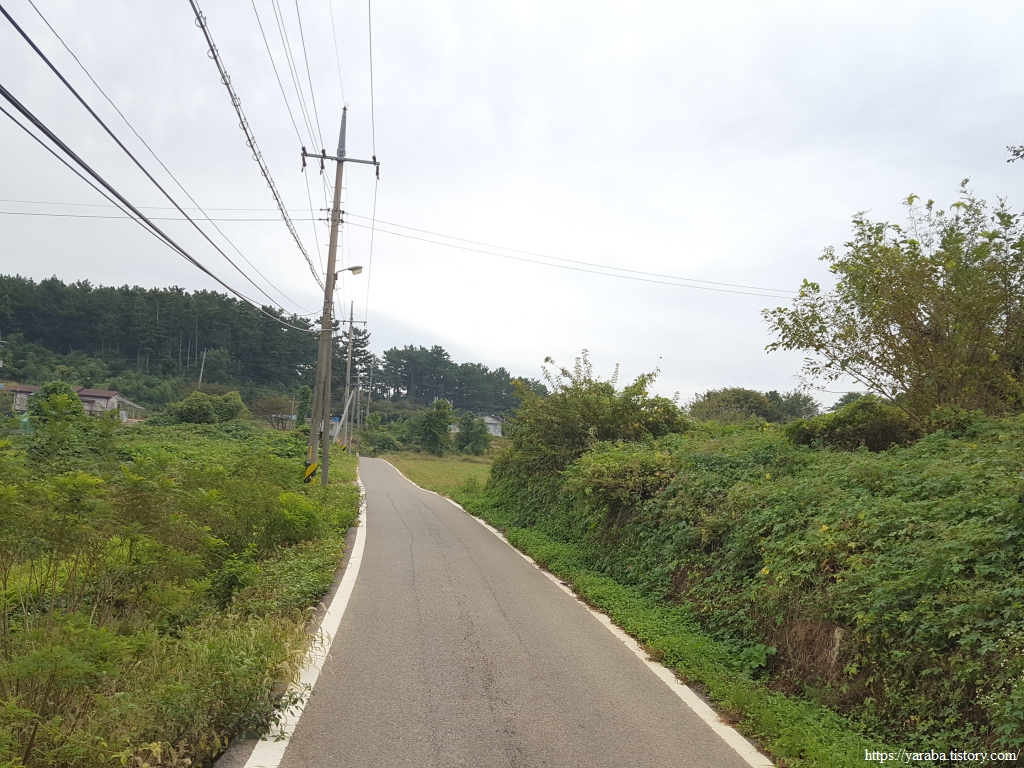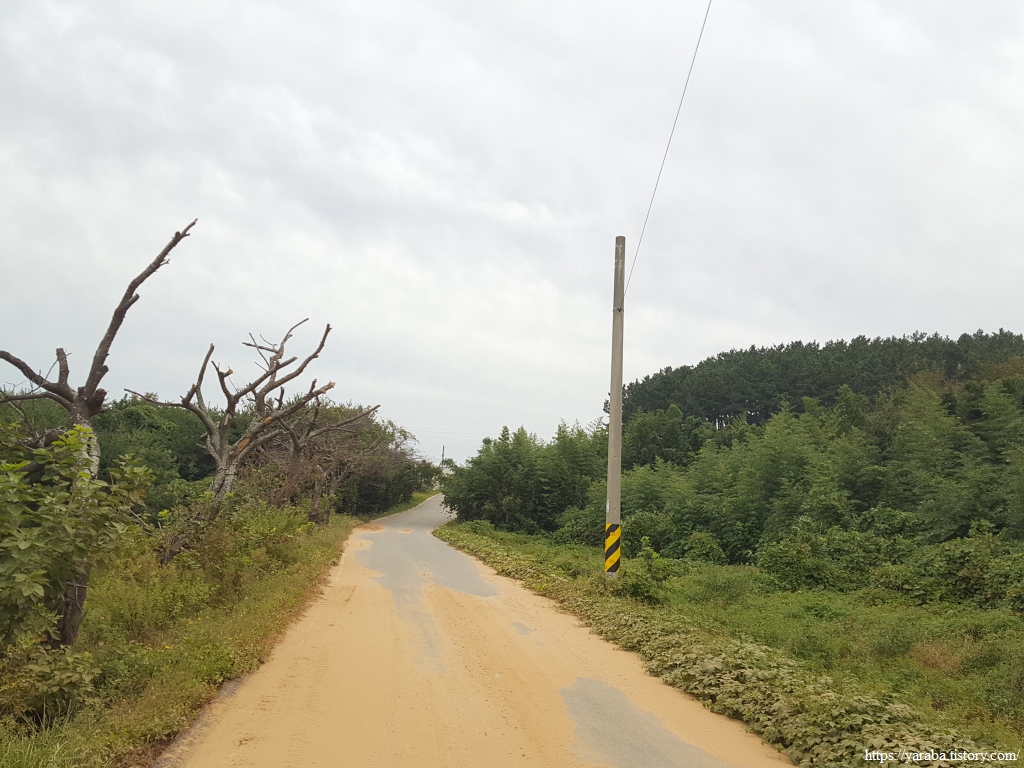 오래 묵혀 놓았던 서해랑길 여행기를 다시 쓰기 시작한다. 여행 다녀온지 거의 5개월 만이다. 그때의 기억을 더듬으며 추억을 곱씹어 본다. 연포 해수욕장에서 하룻밤 묵었던 우리는 서쪽으로 이동하여 연포항 뒷산의 임도를 걷는 것으로 여정을 시작한다. 임도에서 내려오면 산 아래를 휘감아도는 도황리 길을 걸으며 도황 2리 마을회관을 지나고, 도황길 마을길을 통해서 근흥로 도로에 합류한다. 근흥로 도로를 따라 걷던 길은 도황 경로당 방면으로 좌회전하며 해안으로 나가는데, 해안길을 쭉 걸으면 될 일을 필자와 옆지기는 혹시 노두길을 통해서 바다를 건너갈 수도 있지 않을까? 하는 호기심에 시간과 힘만 낭비하고 말았다. 물론 얻은 것도 있지만......