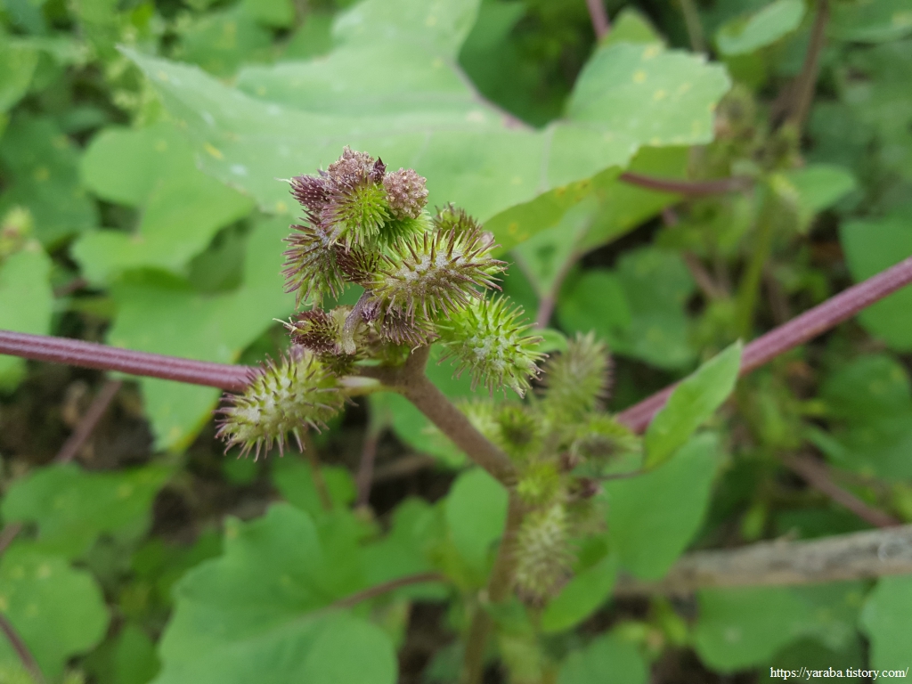 길가에서는 특이하게 생긴 식물이 열매를 맺었다. 국화과의 한해살이 풀인 도꼬마리이다. 치통이나 비염에 약용으로 쓰인다. 마른 열매가 털옷에 잘 붙는 특성이 있다. 독말풀이라 부르는 사람도 있는 모양이고 됫고마리나 도고말이라고 했다는 기록도 있다. 비염으로 고생하는 옆지기가 관심을 가지고 있는 풀이기도 하다.