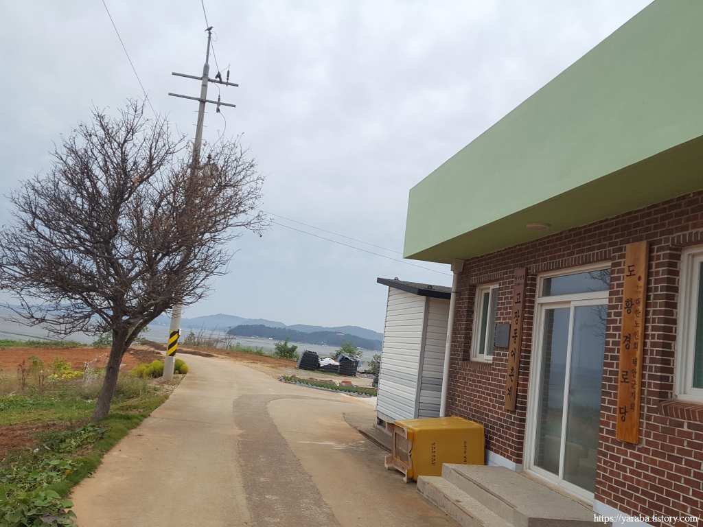 도황 경로당을 지나면서 우리의 선택의 순간이 다가오기 시작했다. 지도를 보면 완전히 이어지지는 않았지만 바다를 가로질러 갈 수 있지 않을까 하는 호기심이 생겼던 것이다. 옆지기는 마을 어르신에게 물어보자고 했으나 별 소득이 없었다.