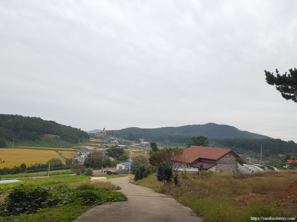 언덕길에 오르면 언덕 너머로 도황 2리 마을이 보이기 시작한다.
