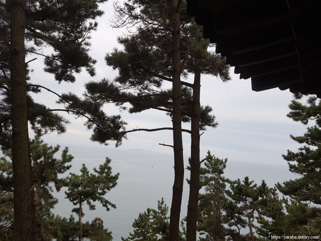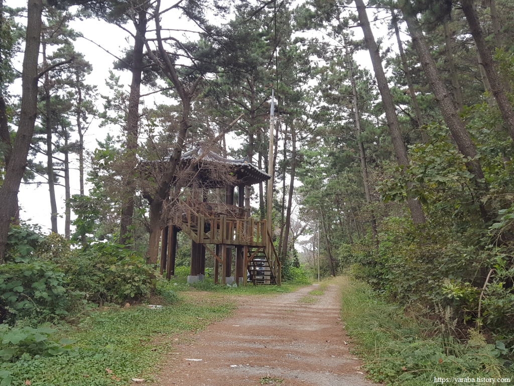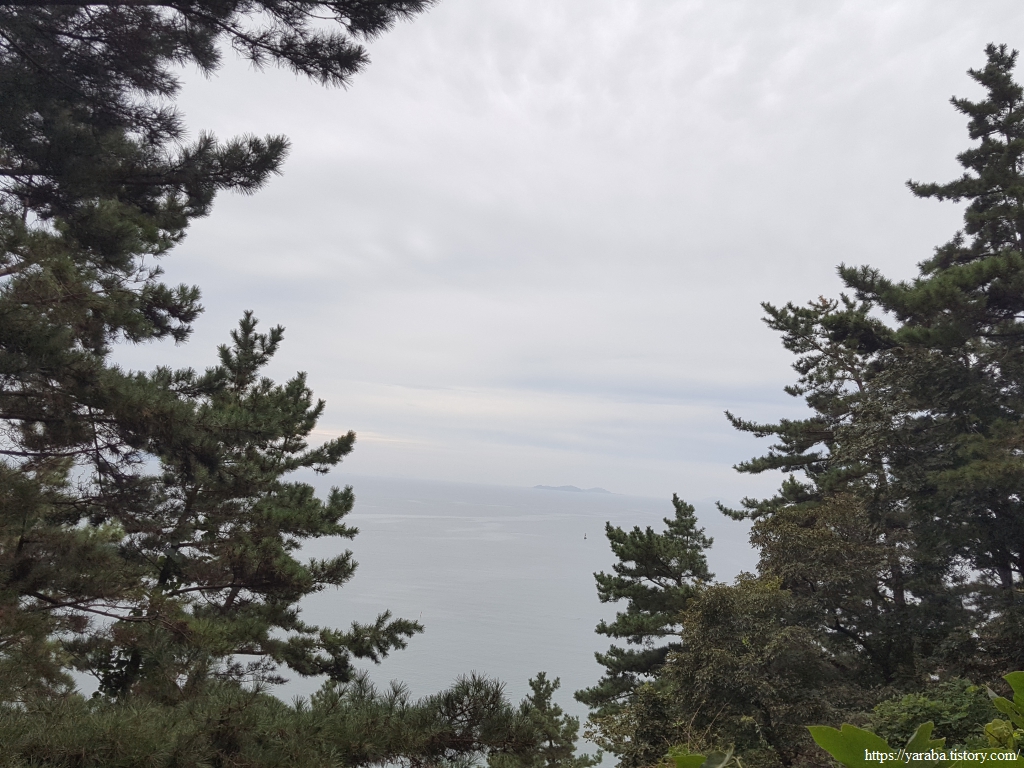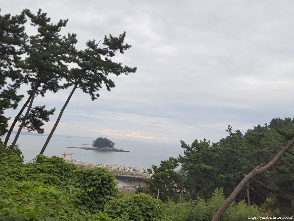 전망대는 좋지만 날도 흐리고 나무로 시야가 막혀서 멀리까지 볼 수는 없다. 이곳에서 보이는 남쪽 바다에는 멀리 태안군 남면에 속한 거아도가 살짝 보일 정도이다.