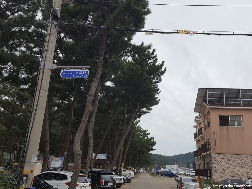 연포 해수욕장의 솔숲 야영장 길을 따라서 서쪽으로 이동한다. 주말을 맞아서 캠핑장을 찾은 이들이 피곤한 몸을 이끌고 아침을 준비하느라 분주한 풍경이다. 집 떠나면 고생이라는데, 무거운 배낭을 메고 걷고 있는 우리나, 좁은 텐트에서 하룻밤을 보낸 사람들이나 고생을 사서 하고 있다는 생각도 든다. 아무리 힘든 일이라도 내가 선택했다는 것에 하늘과 땅의 차이가 있다.