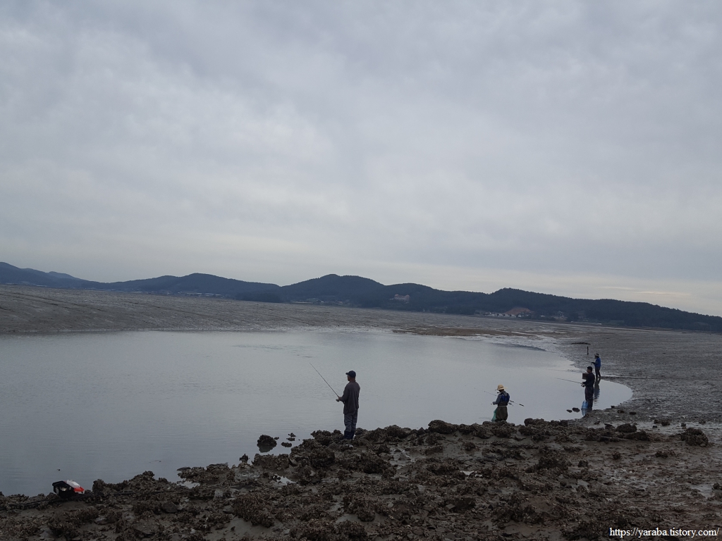 그런데, 첫 관문에서 우리의 길은 막히고 말았다. 많은 사람이 이곳으로 들어온 이유는 망둥어 낚시 때문이었던 것이다. 그런 줄도 모르고 들어왔으니 호기심 비용을 톡톡하게 치른 것이다. 옷장화를 입은 사람들은 물을 건너가기도 했지만 우리가 건너가려고 하니 낚시하시는 분들은 한사코 말린다. 이곳은 어찌해서 혹시 건너갈 수도 있지만 다음에 또 다른 물골이 있는데 그곳은 훨씬 넓어서 건너가기 어려울 것이라고 하신다. 곳곳에서 망둥어를 잡는 모습을 보니 망둥어 포인트는 맞는 모양이었다. 넣으면 건지는 수준이었다. 아쉬움을 남기며 발길을 돌린다. ㅠㅠ
