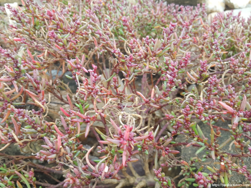 대표적인 염생 식물의 하나인 해홍나물이다. 나물이라는 이름이 붙은 것처럼 삶아서 나물로 먹을 수 있다고 한다.