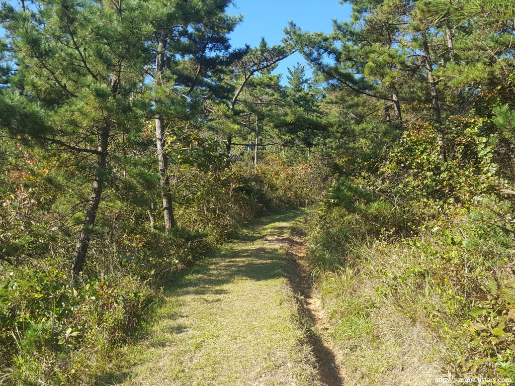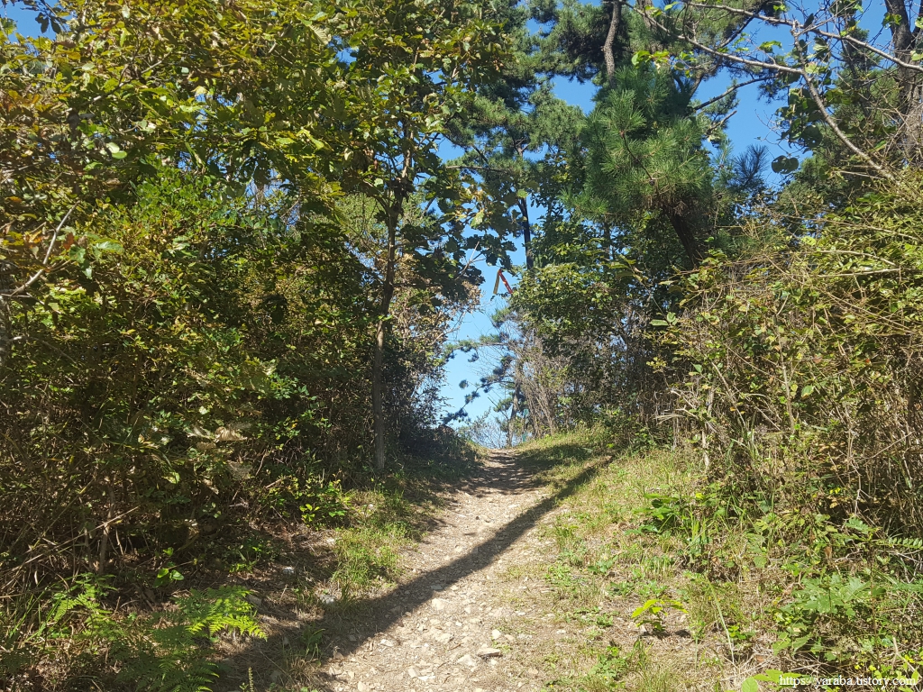 모항으로 내려가며 잠시 국립공원 지대를 벗어났던 길은 다시 국립공원 지역으로 들어가면서 능선으로 이어진 깔끔한 탐방로를 걷는다.