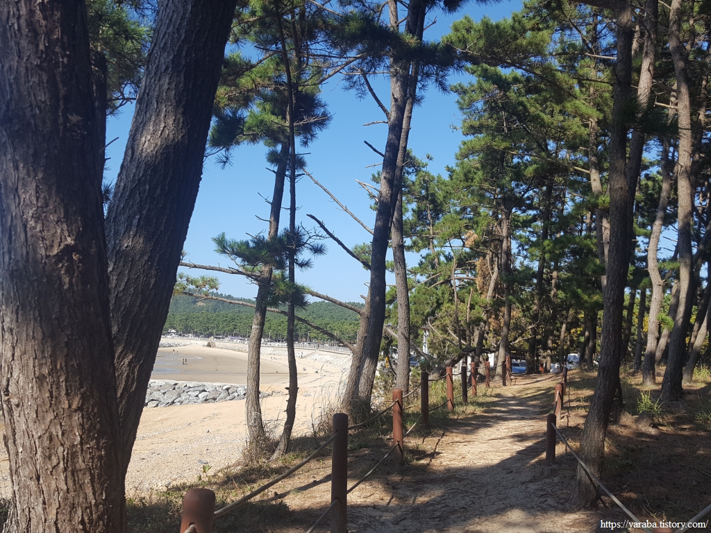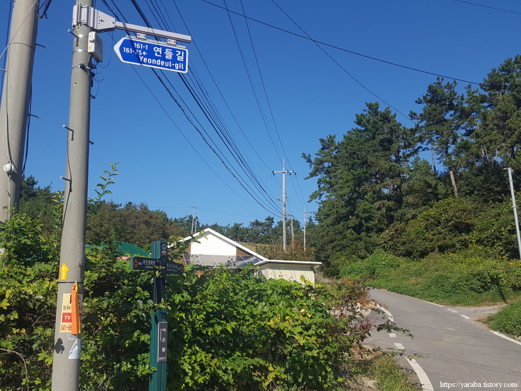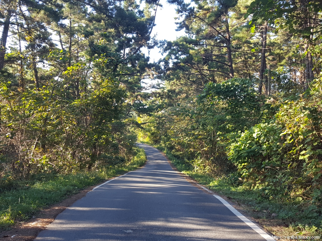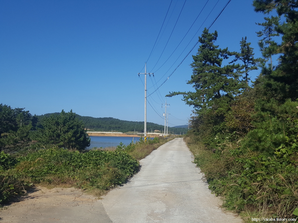원래의 서해랑길에서 벗어나 해안을 걸으며 파도리 해변의 아름다움을 만끽한 우리는 해변 끝자락에서 서해랑길로 올라가서 여정을 이어간다.