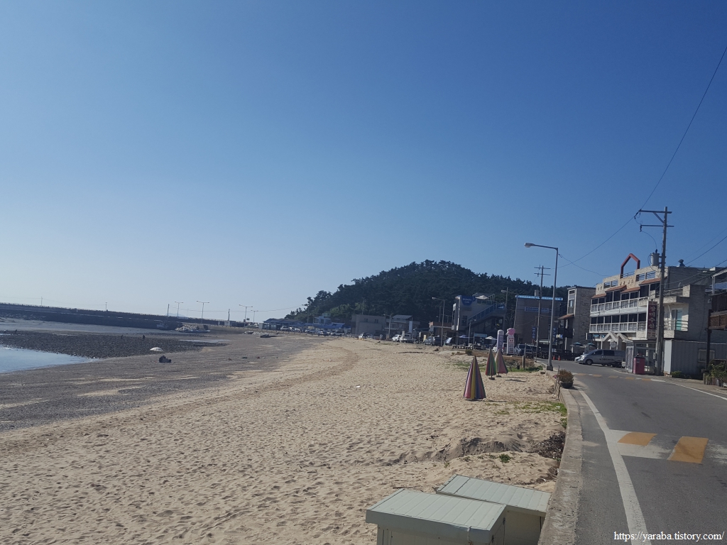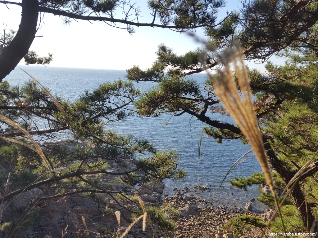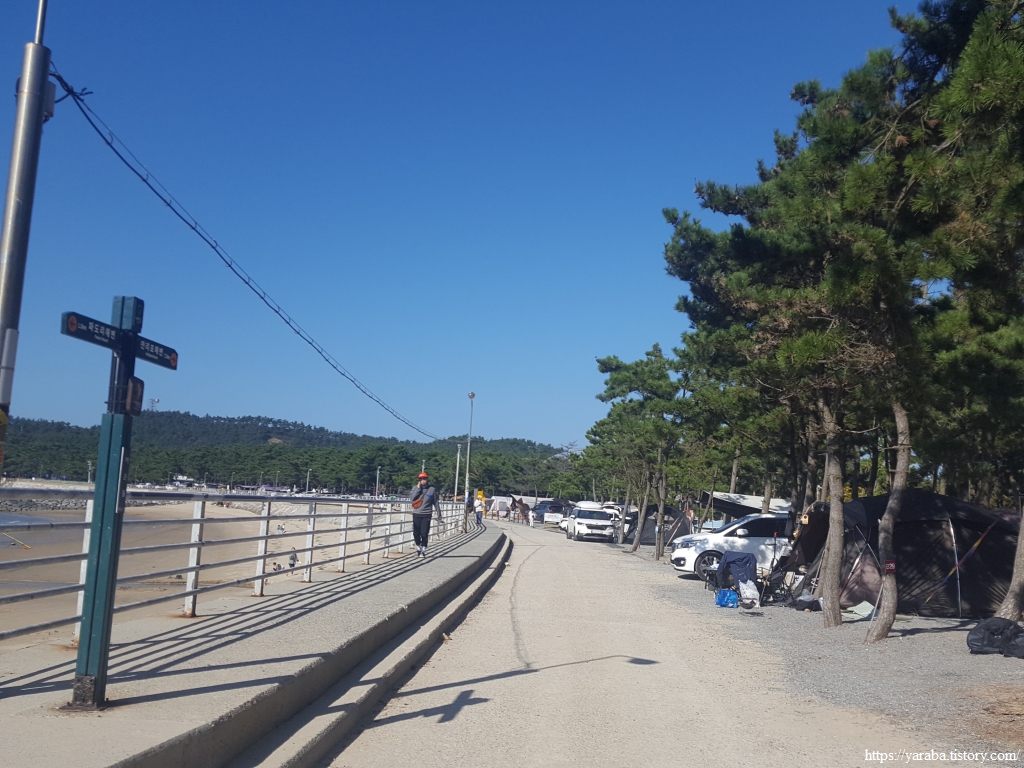 활처럼 휘어진 해변길을 따라서 캠핑장 앞을 가로질러 간다. 오토 캠핑하며 나름 즐거운 시간을 보내고 있는 캠핑족 앞을 지나자니 서로 조금 뻘쭘한 것은 어쩔 수가 없다.