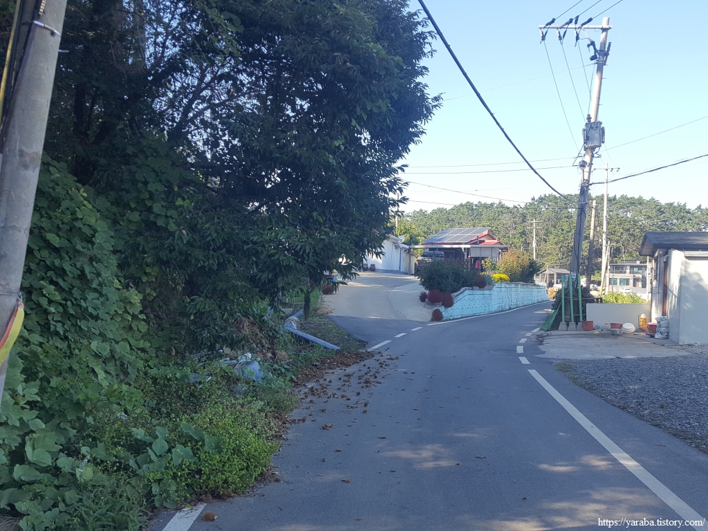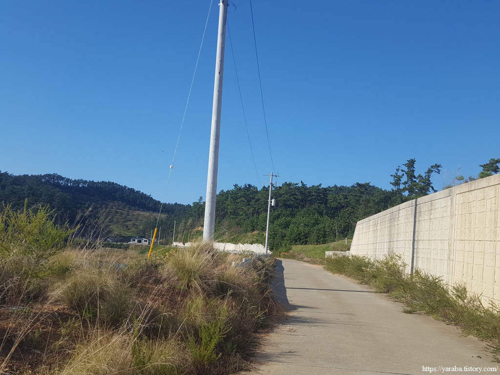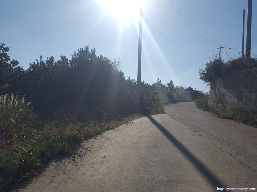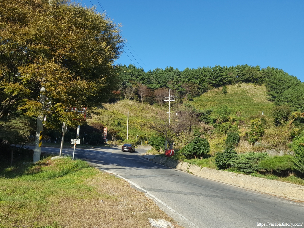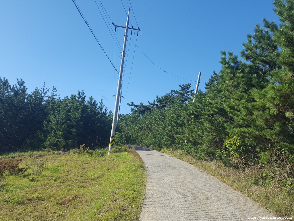 모항항을 빠져나온 길은 얼마간 도로를 따라서 오르막길을 올라야 한다.