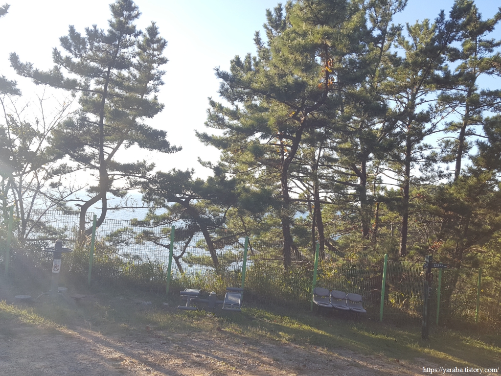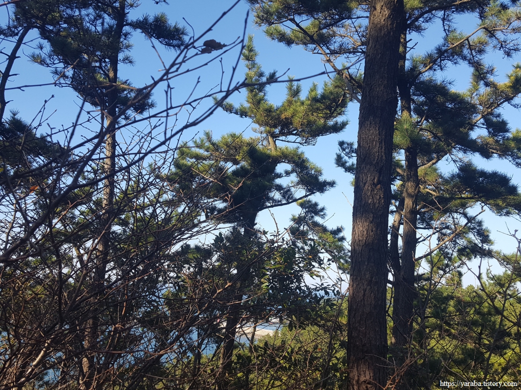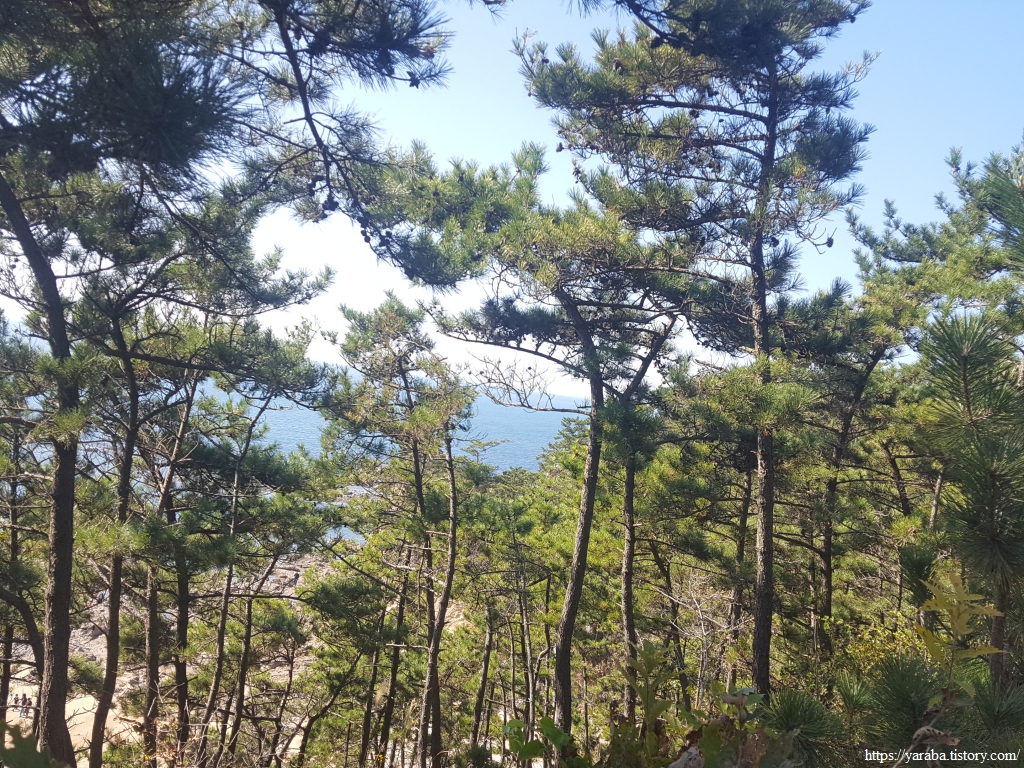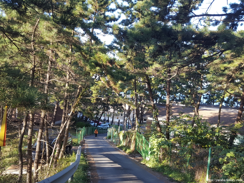 숲 좌측으로 모항 방파제가 보이니 숲길도 서서히 끝나가는 모양이다.