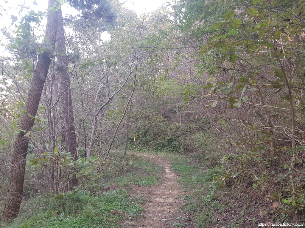 포장된 길이라서 이따금씩 지나는 자동차가 있기는 하지만 걷기 좋은 숲길이다.