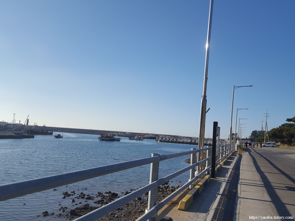 많은 음식점과 펜션들이 즐비한 모항 항구를 돌아서 항구 북쪽으로 이동한다.