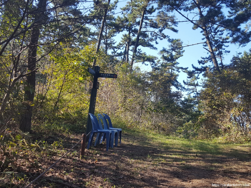 탐방로 좌측으로는 서해 바다를 보고, 숲 위로는 새파란 가을 하늘을 보면서 상쾌한 숲길을 걷는다.