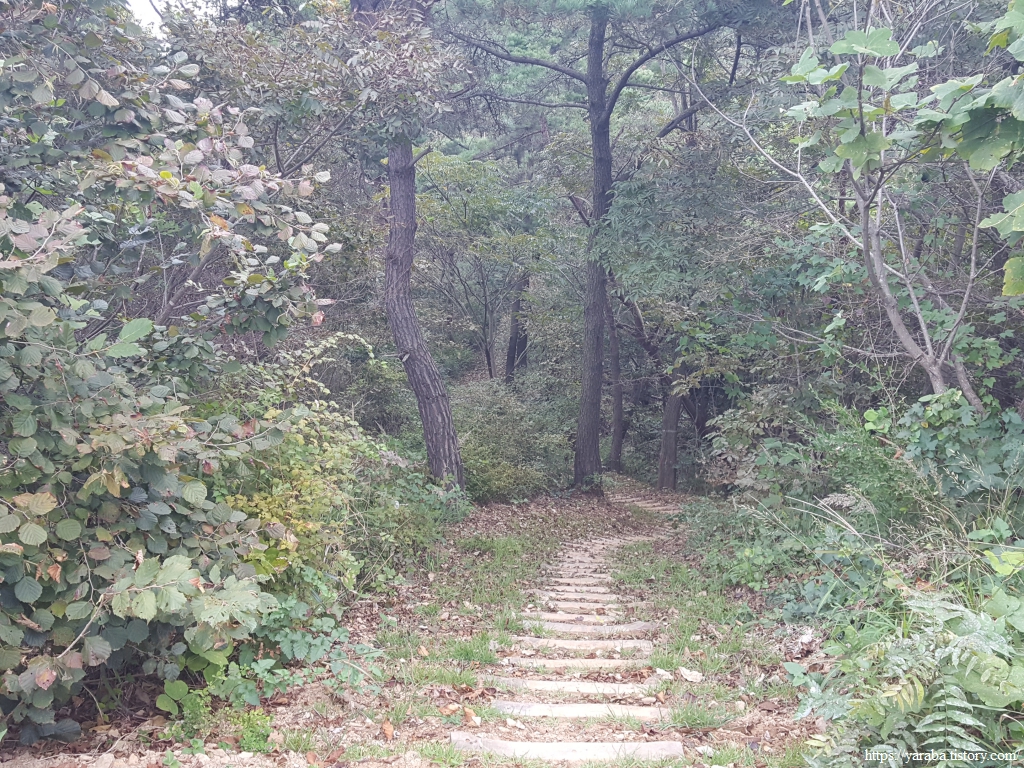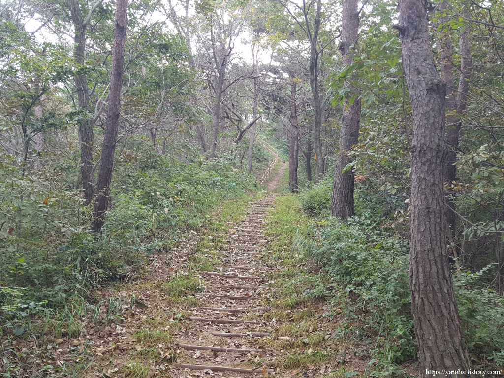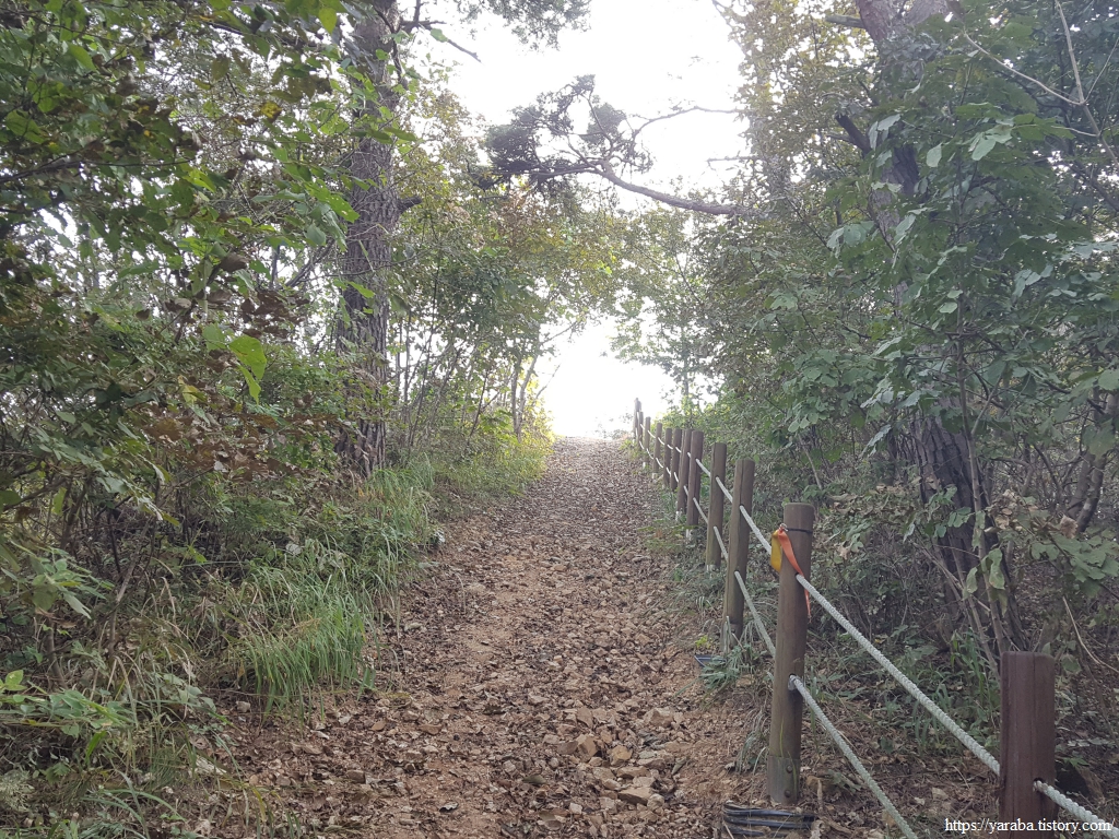 고도 163미터의 높지 않은 산이지만 정상 부근에 이르면 경사가 조금 가파르다.