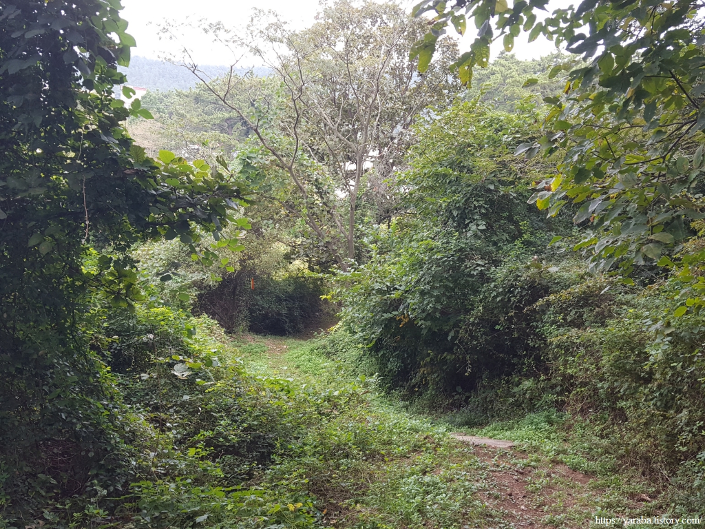 국사봉 하산길 끝은 천리포 수목원의 담장이다.