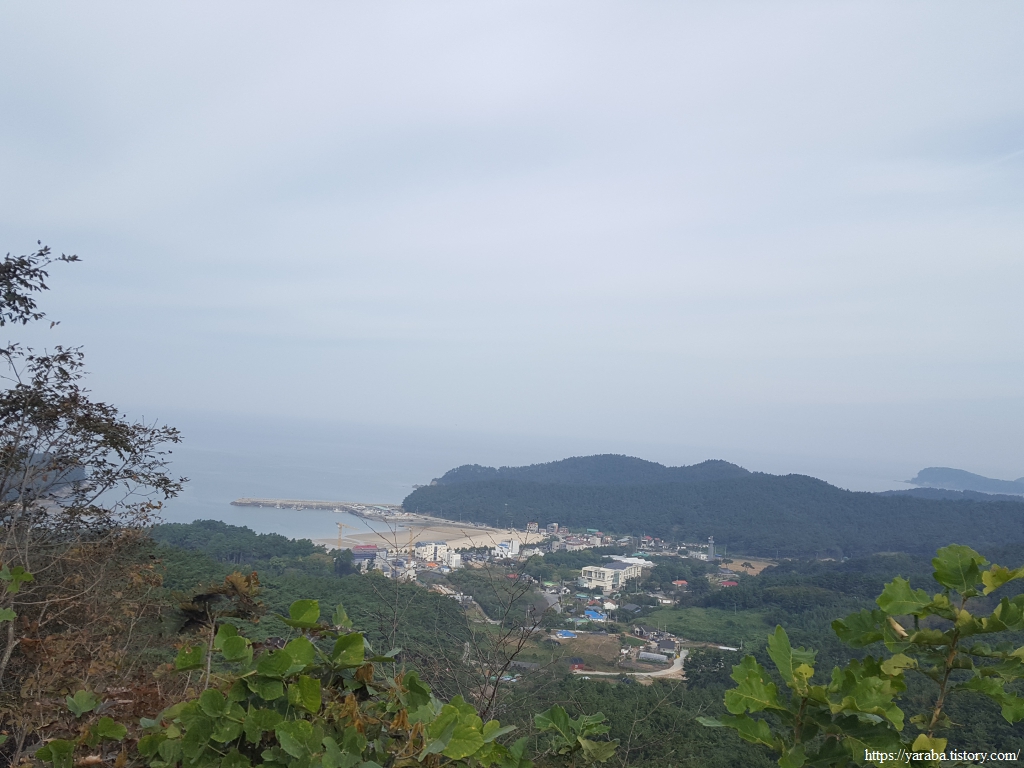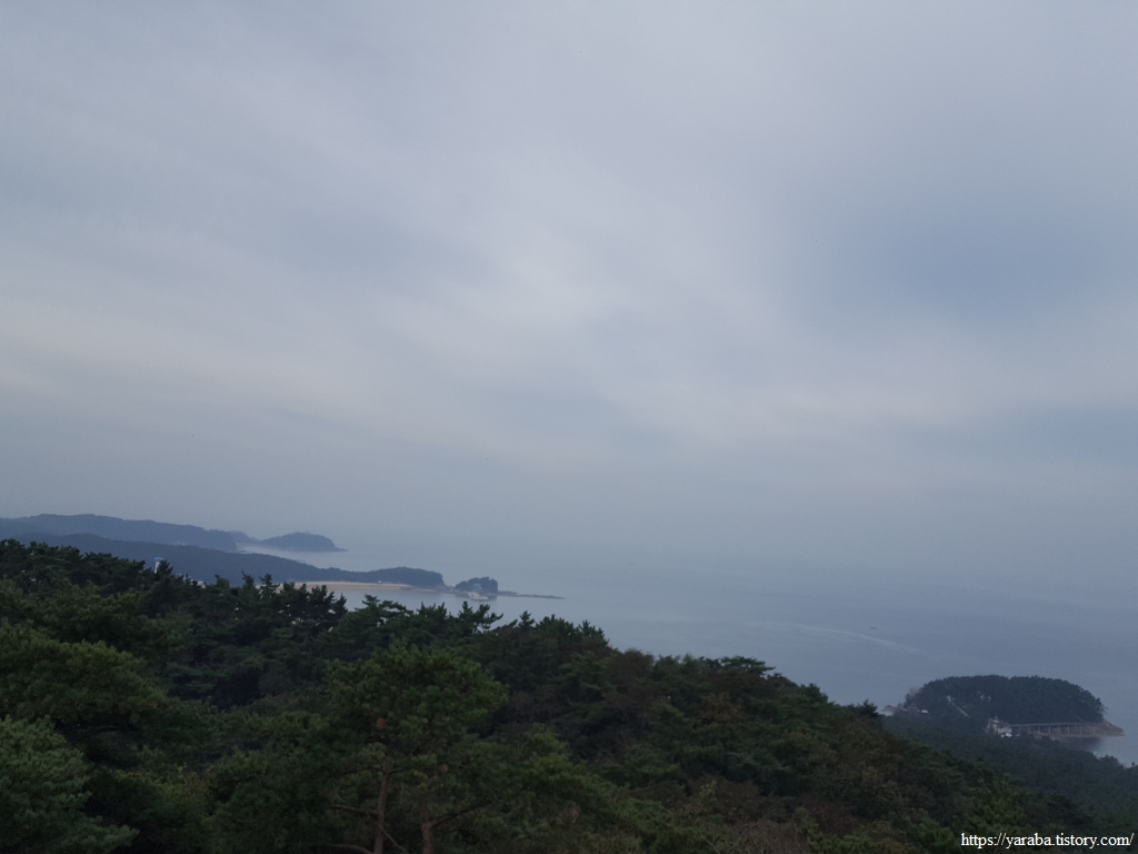 서쪽 산 아래로 천리포 해변과 천리포항이 시야에 들어온다. 만리포 북쪽에서 뭍닭섬을 사이에 두고 1Km 정도 이어지는 천리포 해변은 실제 길이로는 2리에 해당하지만 만리포 덕분에 천리포의 이름을 가진 것 아닌가 싶다.