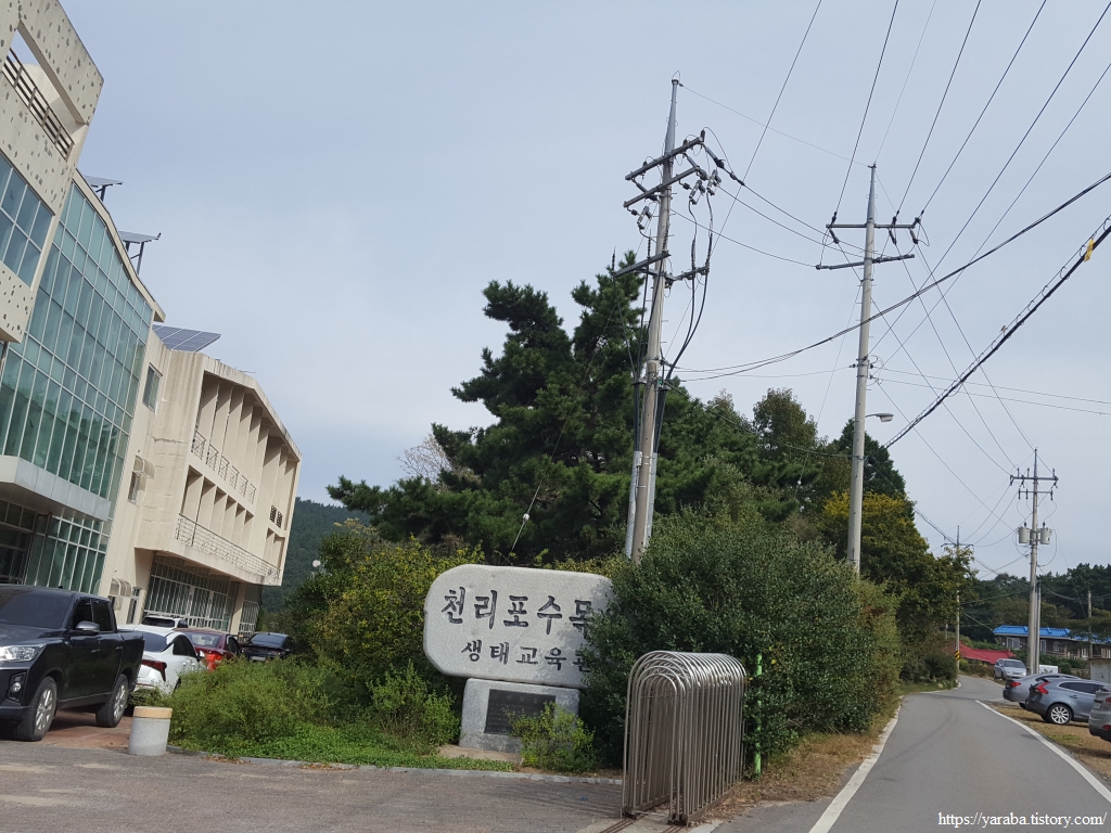 길은 국내 1호 사립 수목원인 천리포 수목원의 생태교육원을 돌아서 간다. 웃는 얼굴의 장승에 잠시 미소를 지으며 길을 이어간다.