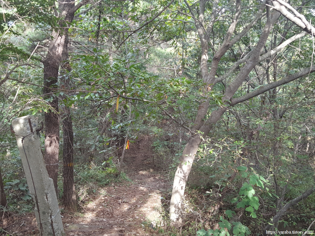 망산 고개를 지나온 길은 수망산 자락의 숲길로 진입한다.