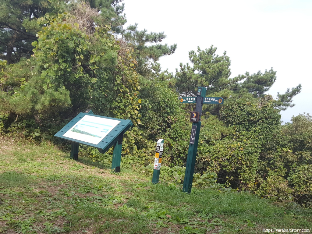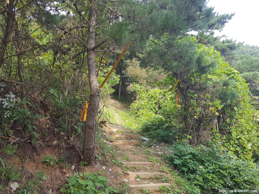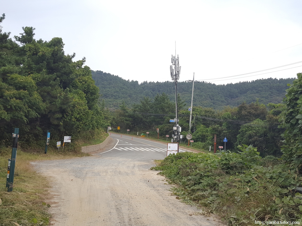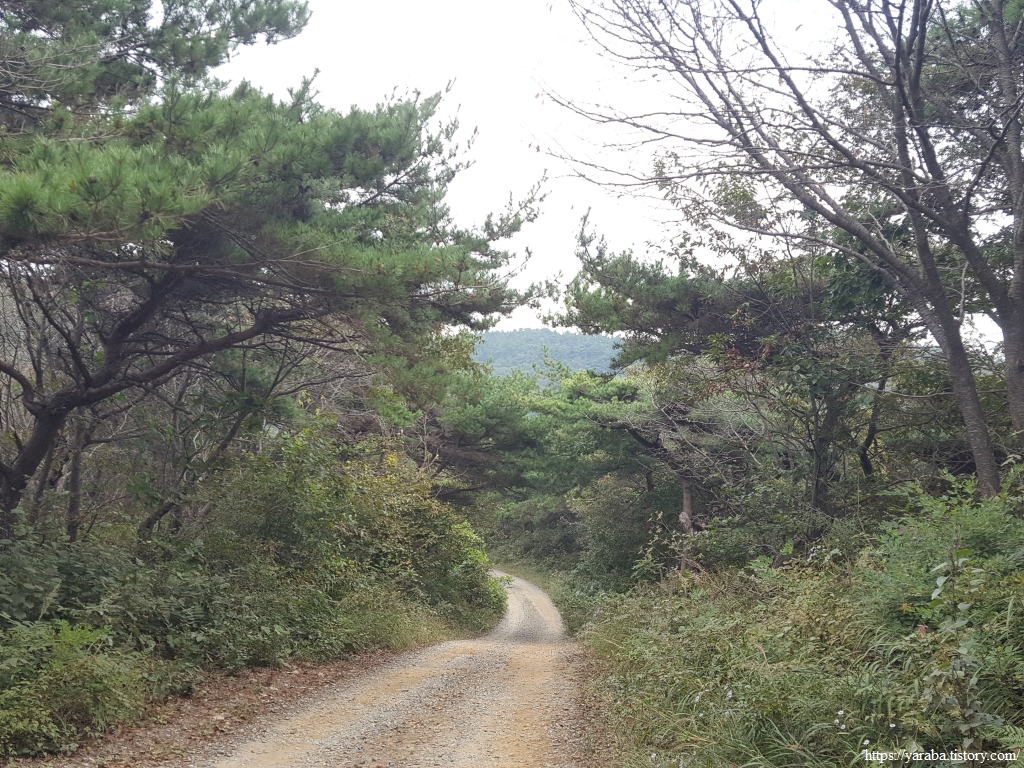 길은 갈림길에서 백리포 해안으로 내려가지 않고 능선길을 따라서 숭의로 도로를 향해서 이동한다.