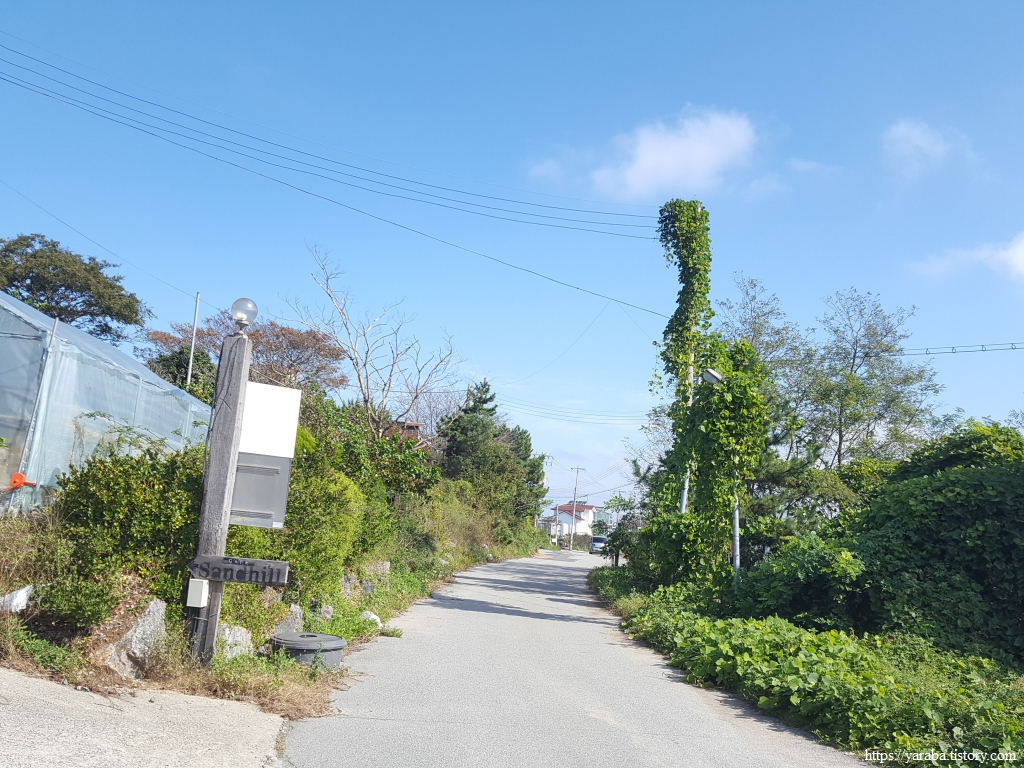 도로로 나왔던 길은 신두 3리 아랫말에서 마을길로 다시 들어간다. 유명 관광지라 그런지 길 주위에는 펜션이 많다. 텃밭에 들깨를 심으신 분들은 들깨 수확을 앞두고 가족들을 총동원하여 깻잎 수확에 여념이 없다. 서리를 맞아서 노랗게 변한 잎을 따고 있는 것이다. 싱싱한 초록색의 깻잎에서 나는 풍미만 생각했는데, 들깨 열매가 익어 수확하기 전에 노랗게 물든 깻잎을 깻잎지를 만드는 용도로 사용한다고 한다.
