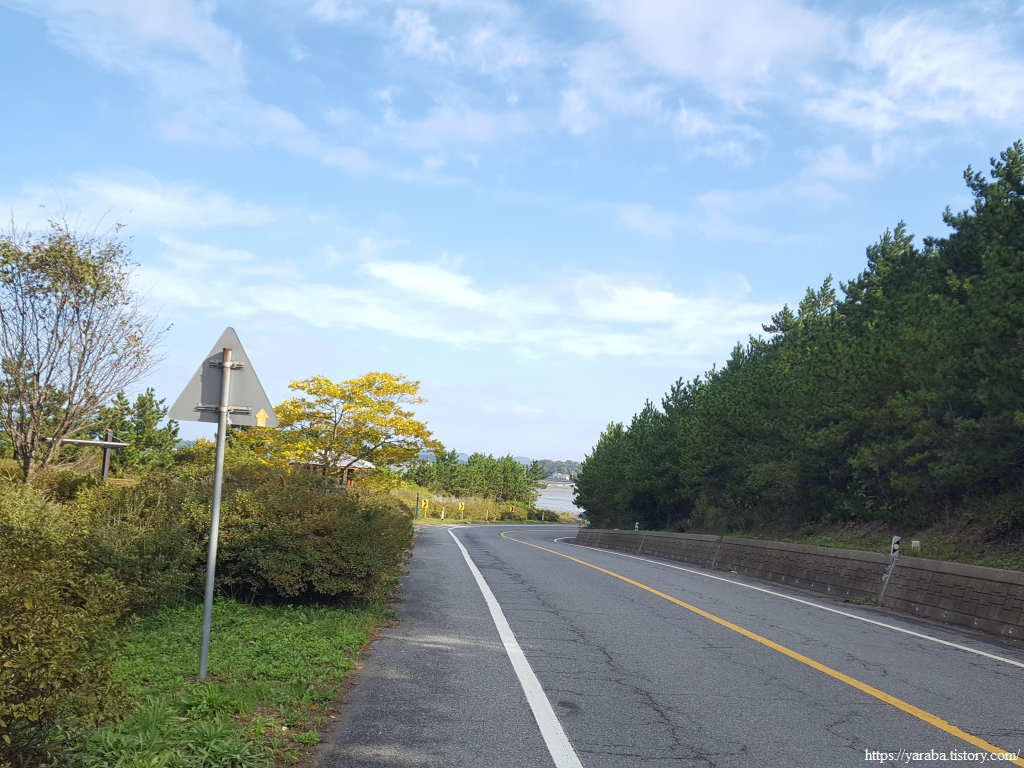 도로를 벗어나 걷던 해안 둑방길은 얼마 지나지 않아 다시 신두로 도로로 나온다. 도로를 따라가도 되지만 갓길이 넓지 않아 짧지만 둑방길로 돌아가는 것이 좋다.